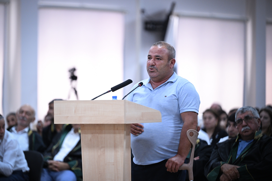 Потерпевший Азер Гулиев, отвечая на вопросы государственного обвинителя Фуада Мусаева, сообщил, что в 1993 году, во время оккупации Кяльбаджара, когда они с семьей покидали район, на территории, известной как “Туннель”, они подверглись обстрелу со стороны вооруженных сил Армении. В результате он получил семь огнестрельных ранений и был захвачен в плен. Его младшая сестра, тоже получившая ранение в том инциденте, как утверждали, погибла. С тех пор - вот уже 33 года - о ее судьбе ничего не известно.