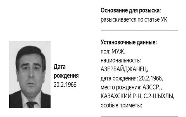 Как передает "Qafqazinfo" со ссылкой на “Коммерсант”, согласно официальной базе МВД РФ, он разыскивается по статье уголовного кодекса, по какой именно - не указано.