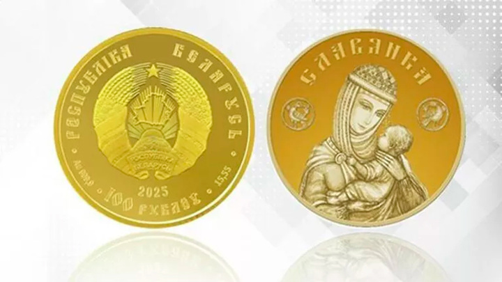 Головченко рассказал, что гомельское предприятие "Кристалл" было дооснащено и была отчеканена первая золотая монета, которая называется "Славянка", – ее он и передал Лукашенко.