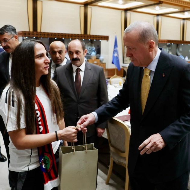 Президент Турции Реджеп Тайип Эрдоган принял членов женской футбольной команды "Юксековаспор".