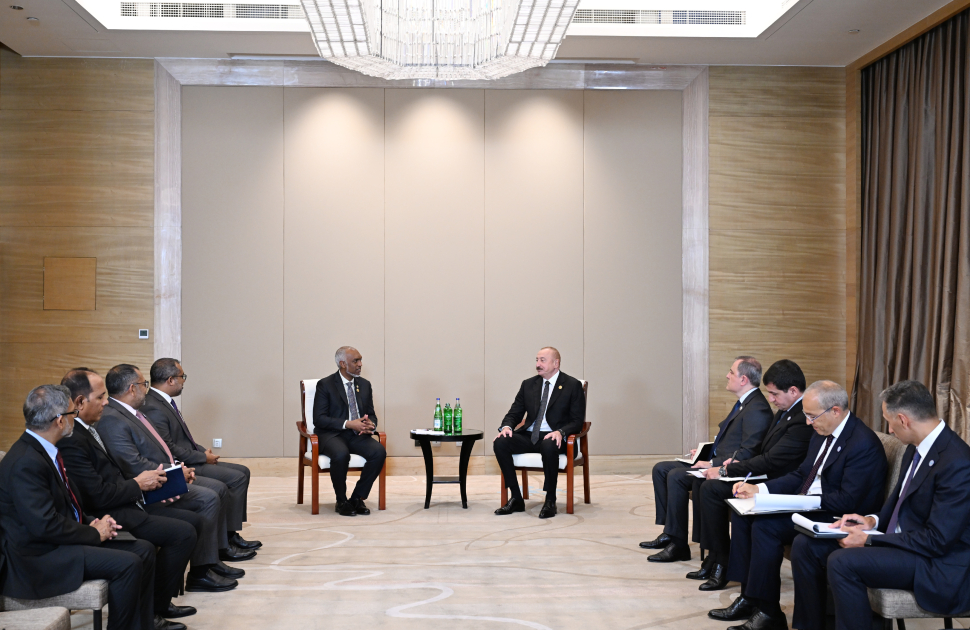 1 сентября Президент Азербайджанской Республики Ильхам Алиев встретился в китайском городе Тяньцзинь с Президентом Мальдивской Республики Мохаммедом Муиззу.