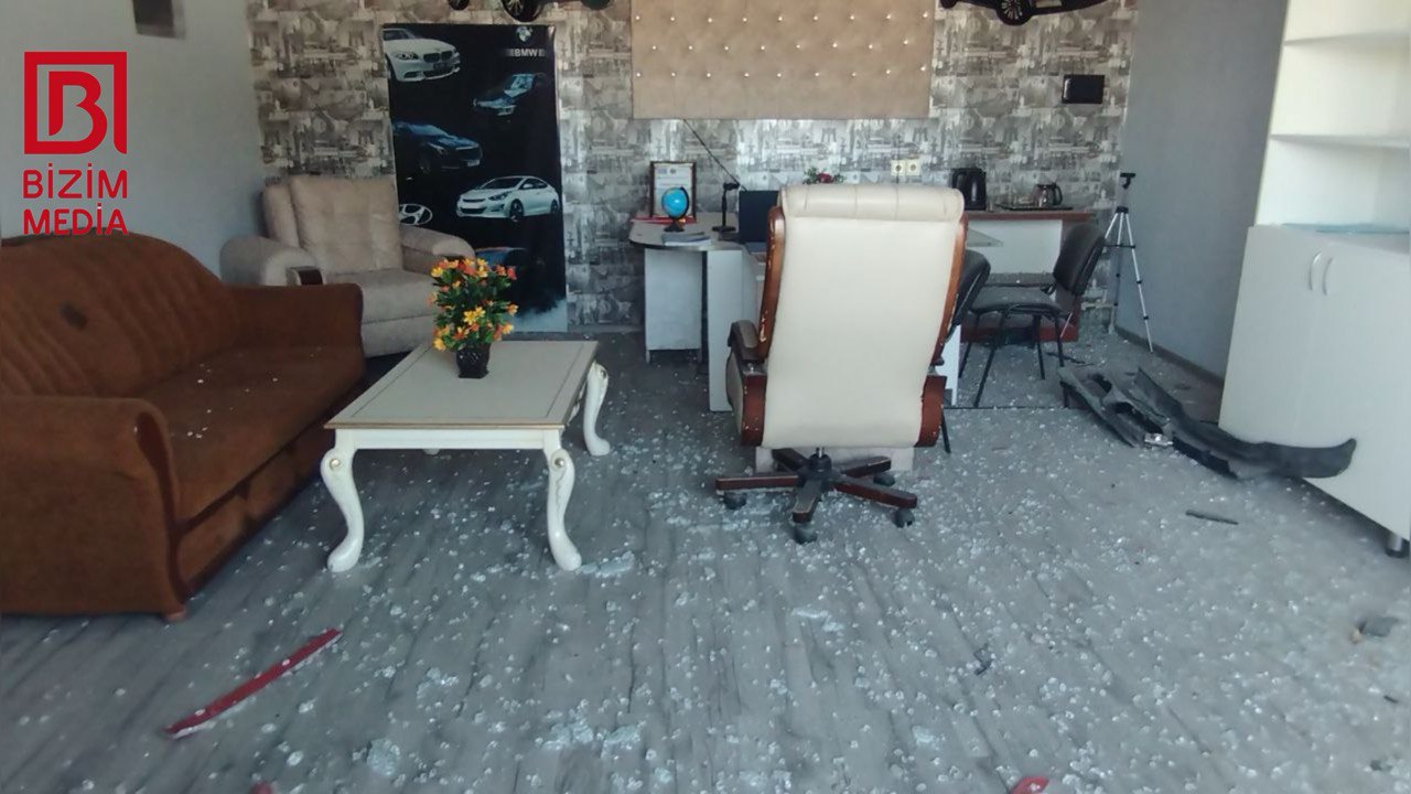 Как передает "Qafqazinfo", на кадрах с места происшествия видно, как двигающийся на высокой скорости автомобиль сначала врезался в автомобиль ВАЗ, после чего врезался в офис.