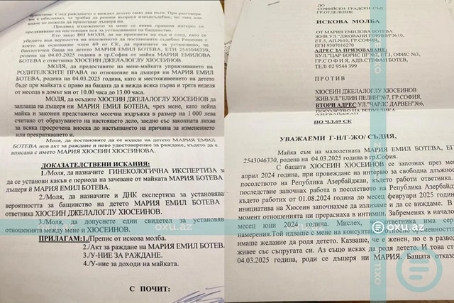 Мария Ботева, представившаяся секретарем азербайджанского посольства в Софии, обратилась в редакцию с сенсационным заявлением о том, что у нее родился ребенок от посла Гусейнова. В качестве доказательства женщина предоставила фото искового заявления, поданного в Софийский городской суд.