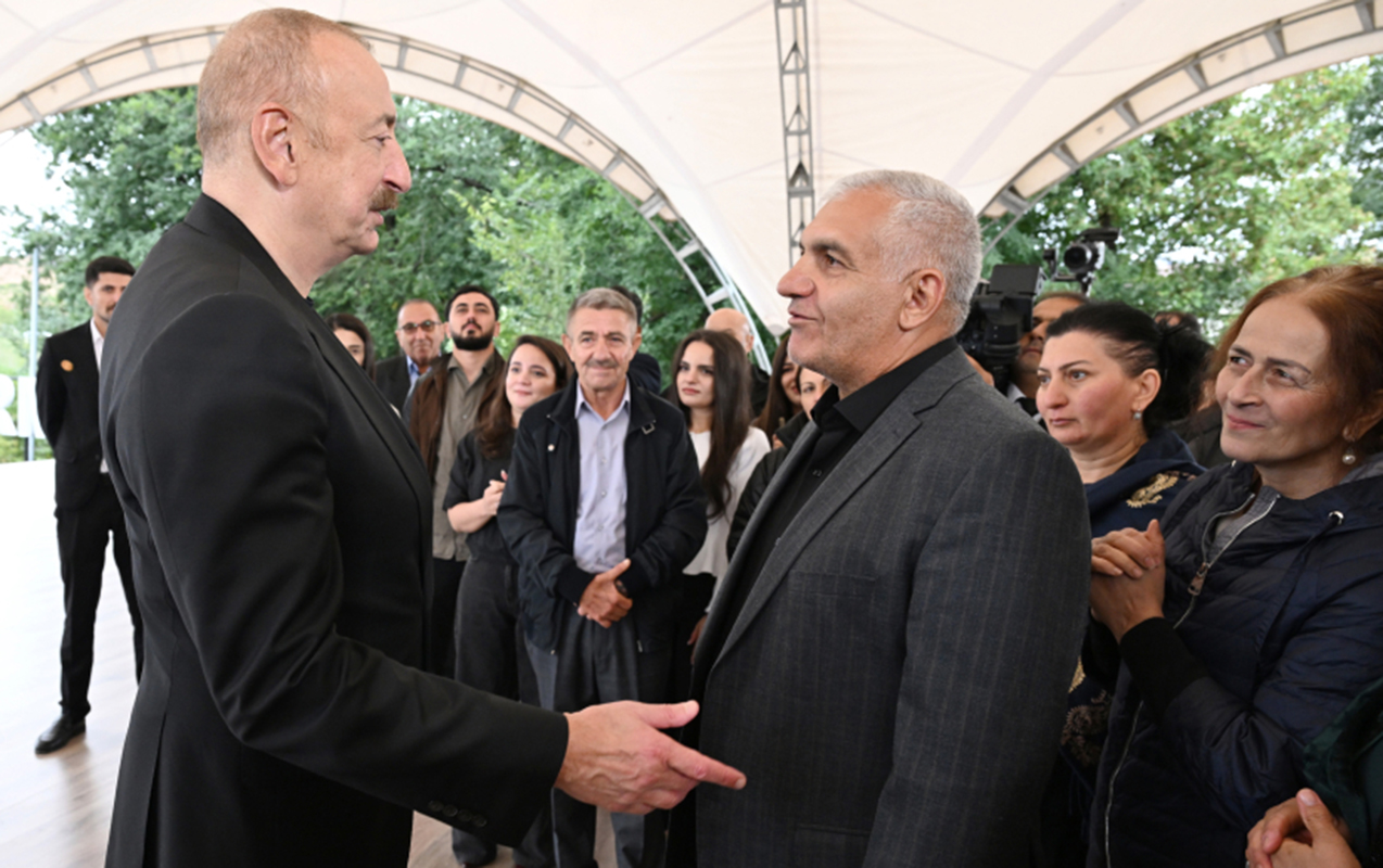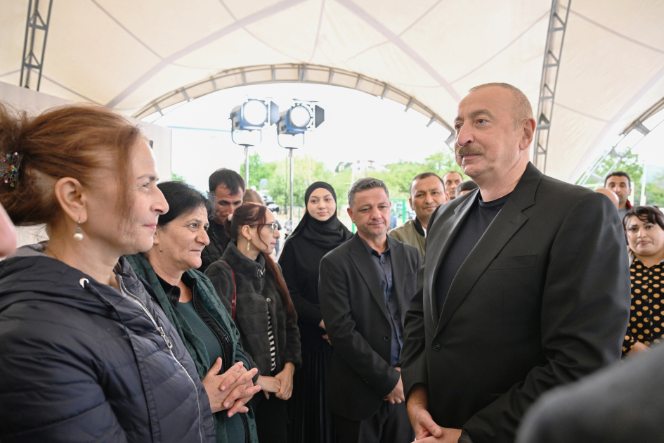 История последних пяти лет – это история Победы, наша славная история, и я рад, что вы уже приехали и обосновались на родной земле, земле своих предков. Здесь для вас созданы все условия: построены, отремонтированы дома, есть все условия – вода, газ, электричество, отопление, школы, медпункты, дороги. Самое главное, это - родной Карабахский край. Это живописные места, повсюду горы, леса, родники, много воды. То есть здесь есть все условия, чтобы просто комфортно жить, строить и созидать, растить детей, дать им хорошее воспитание. Отныне азербайджанский народ будет жить в условиях мира.