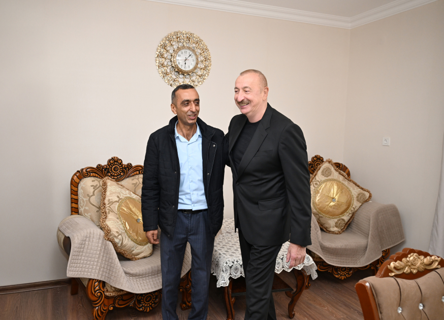 Глава государства побывал в доме переехавшего в село Мазахира Новрузова, побеседовал с членами семьи.