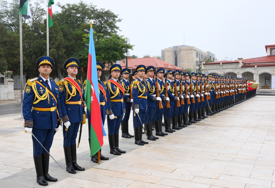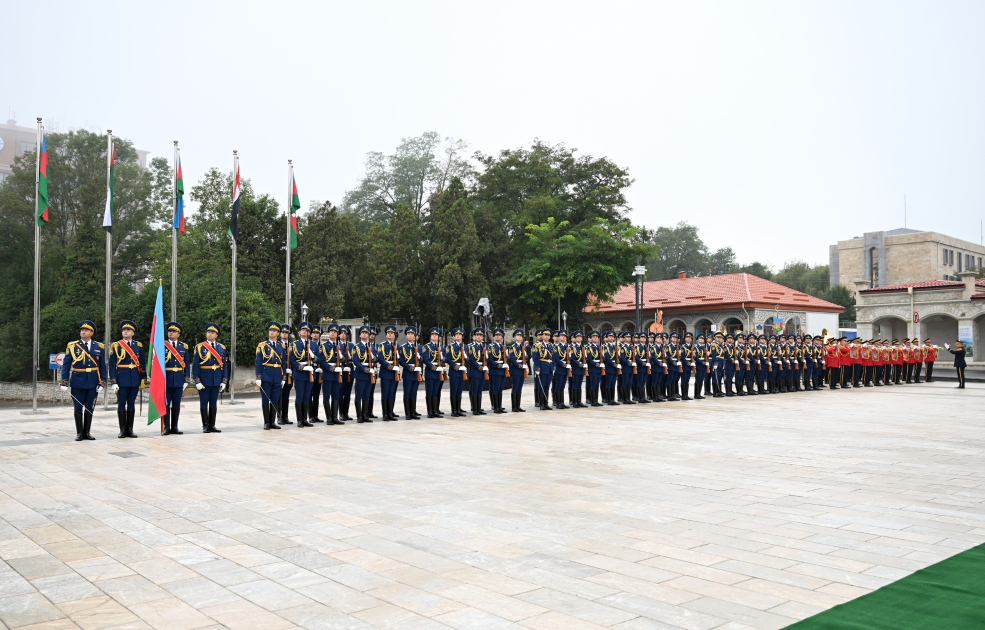 Под звуки военного марша почетный караул прошел перед Президентом Азербайджана Ильхамом Алиевым и Президентом Объединенных Арабских Эмиратов Шейхом Мухаммедом бен Заидом Аль Нахайяном.