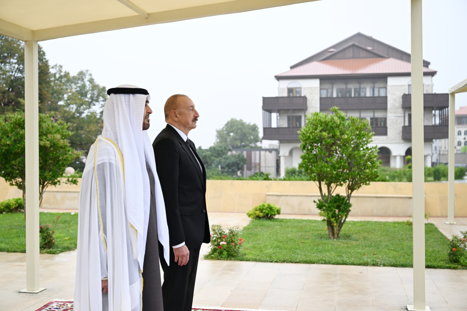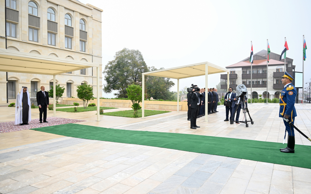 Президент Азербайджанской Республики Ильхам Алиев и Президент Объединенных Арабских Эмиратов Шейх Мухаммед бен Заид Аль Нахайян обошли строй почетного караула.