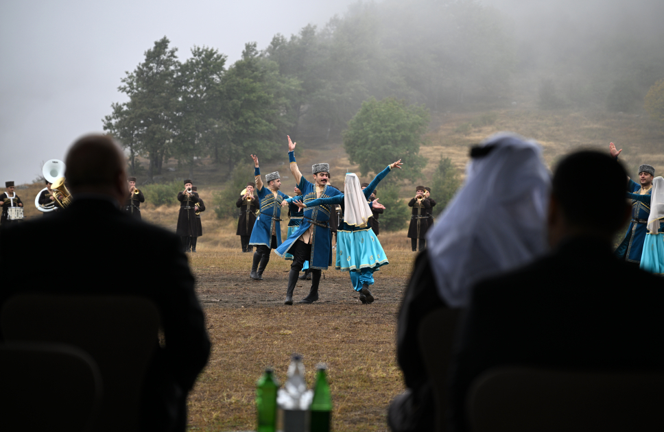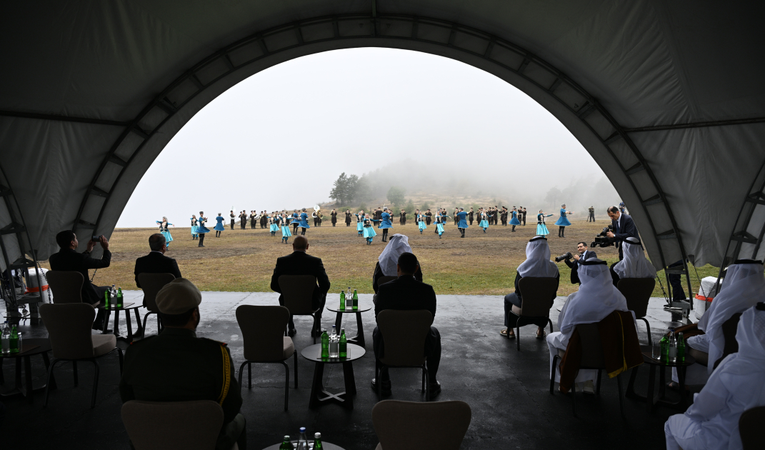 16 сентября Президент Азербайджанской Республики Ильхам Алиев и Президент Объединенных Арабских Эмиратов Шейх Мухаммед бен Заид Аль Нахайян посмотрели шоу карабахских скакунов на Джыдыр дюзю.