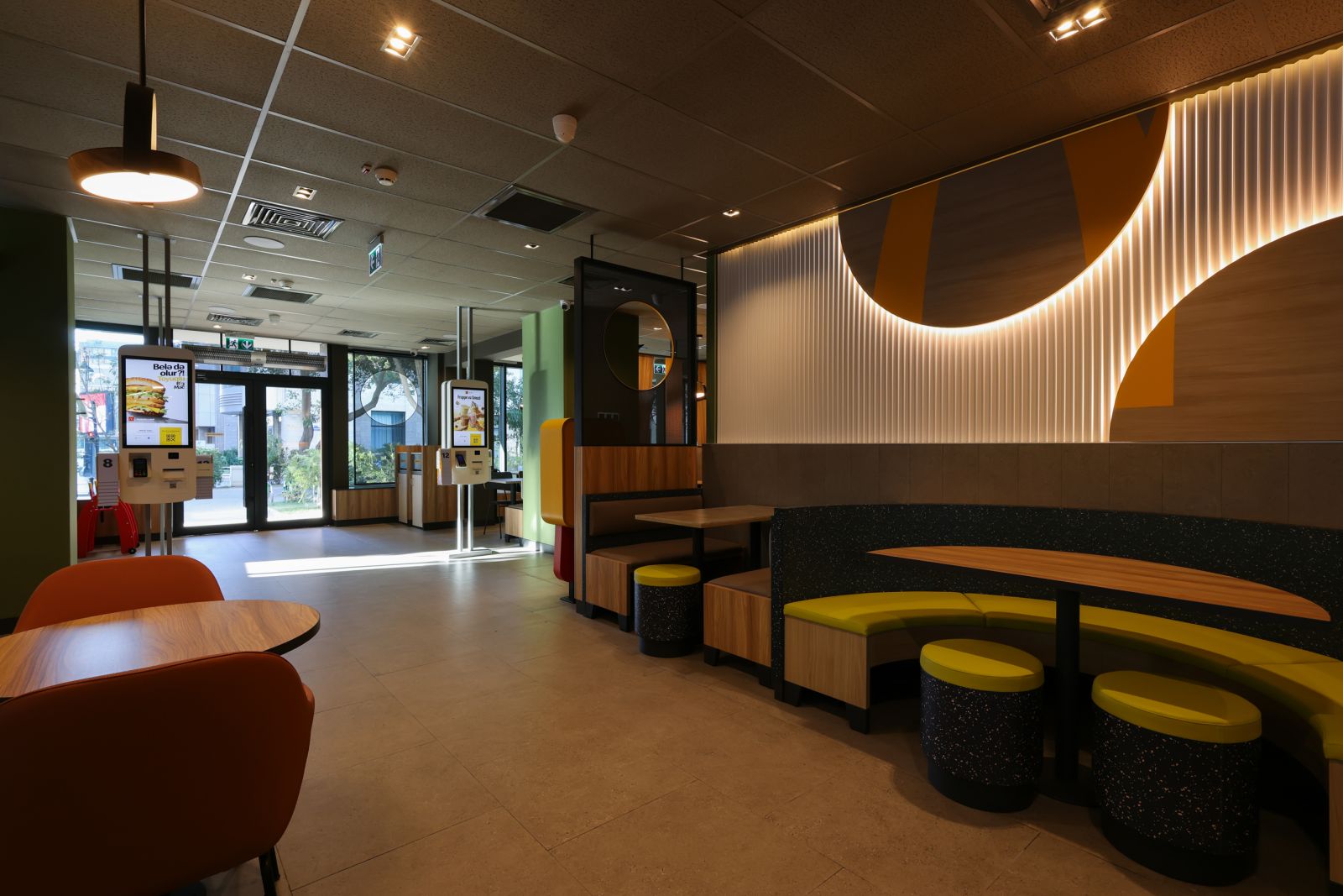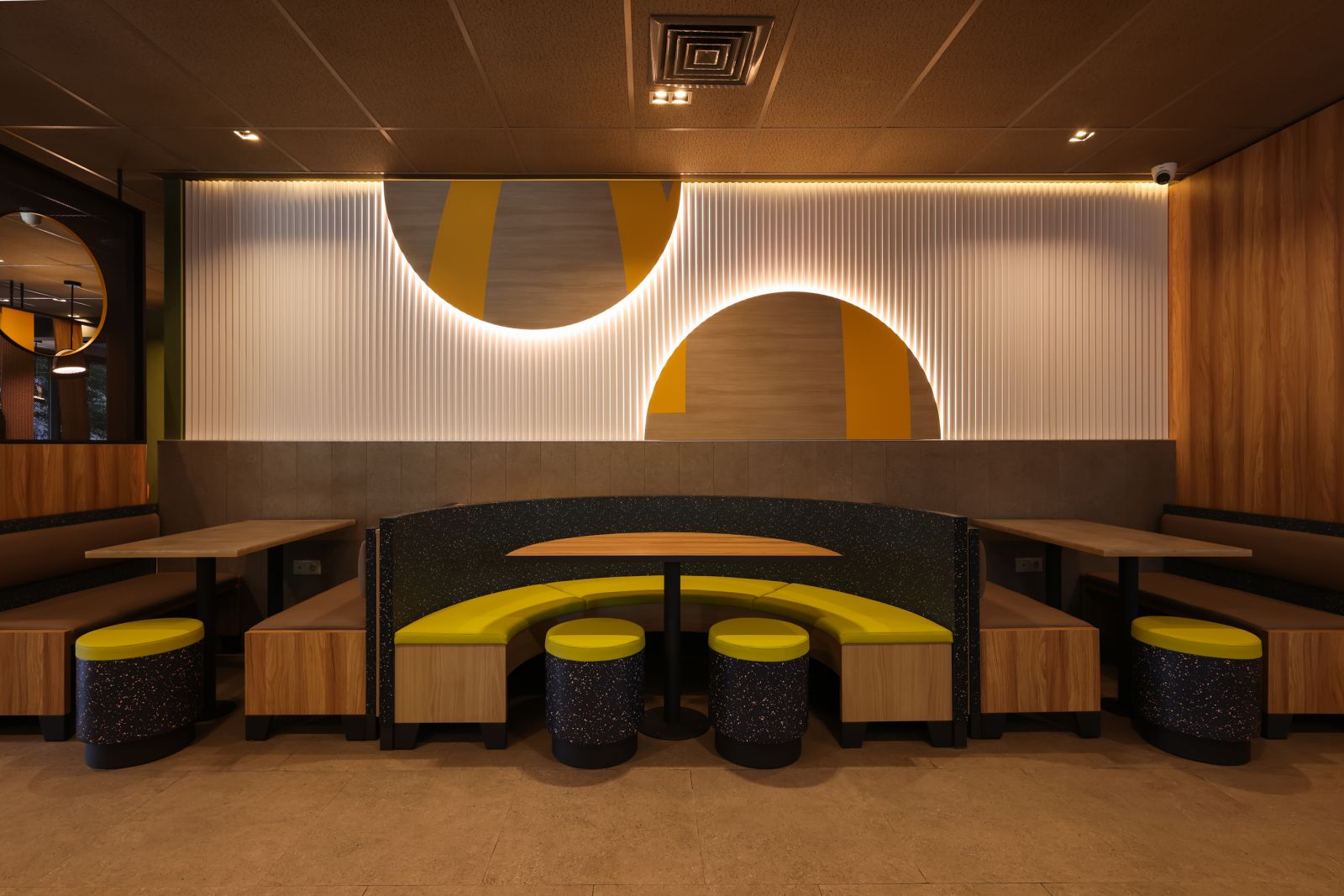 Ресторан рассчитан на 125 гостей и выполнен в современном in-store формате — в дизайне “Luna”, который сочетает стильные архитектурные решения и функциональную планировку, создавая комфортную атмосферу для посетителей.