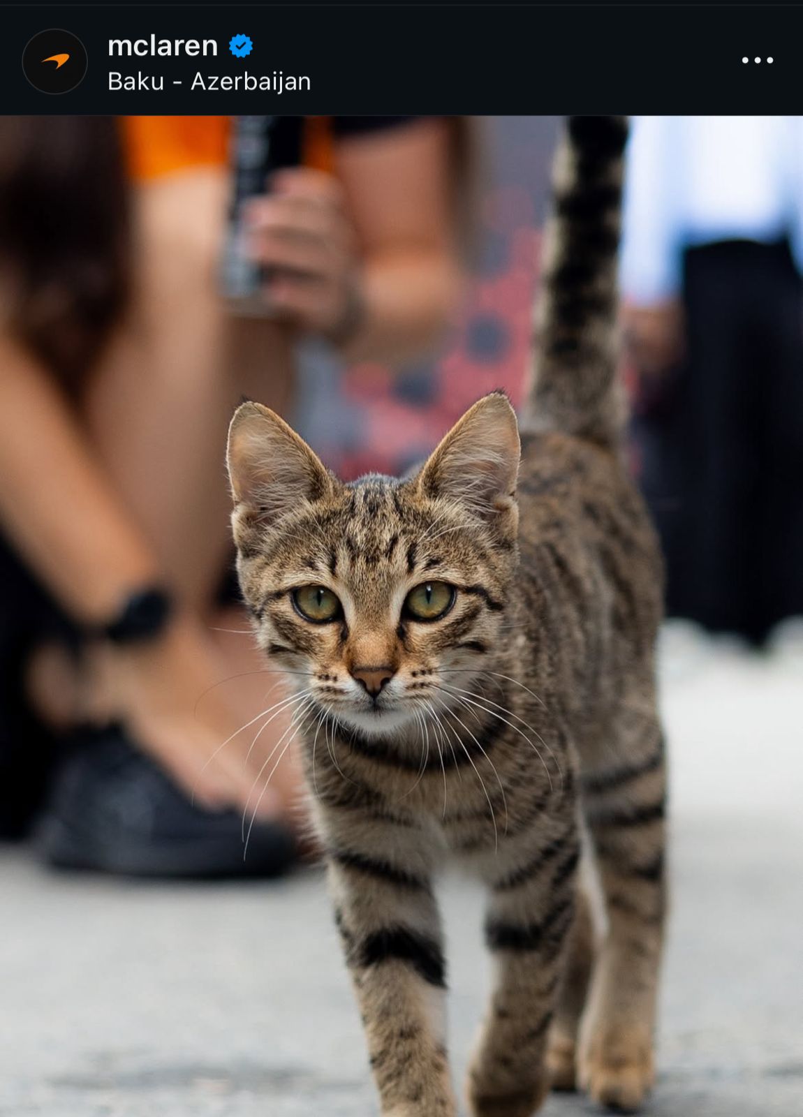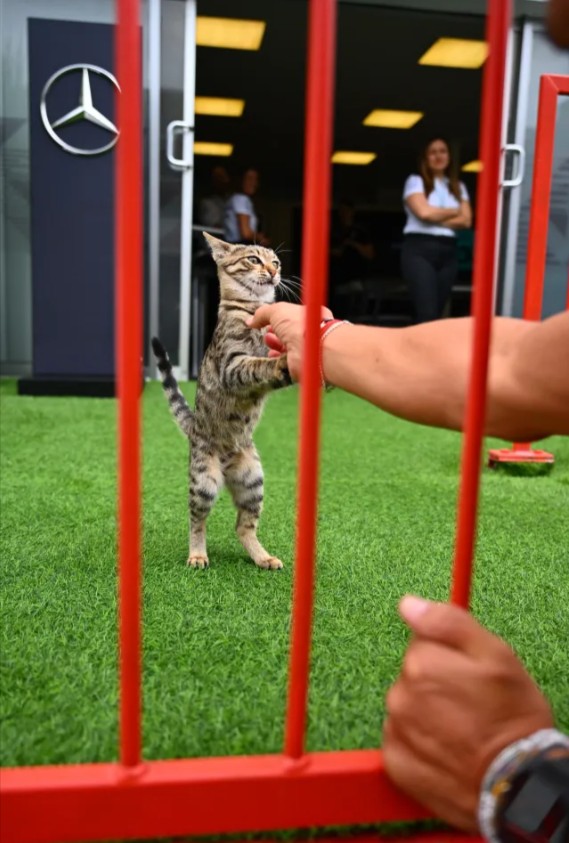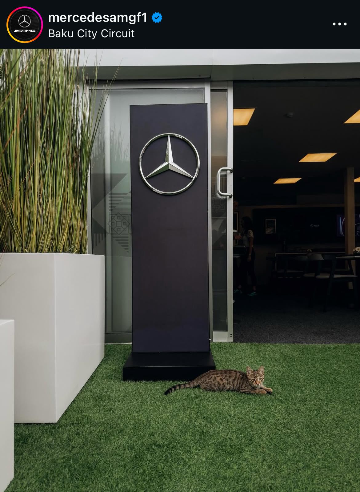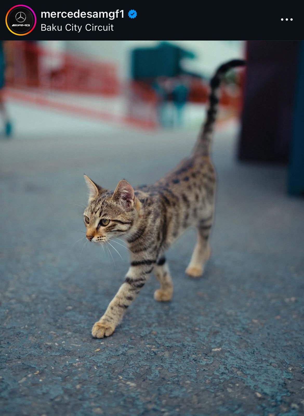 Как передает "Qafqazinfo" со ссылкой на Autosport, кота выдворили из-за пределов паддока, причем дважды. Однако он вернулся снова, и на третий раз выгонять его уже не стали. Мало того, кот оказался весьма дружелюбным и охотно шел на контакт с людьми из паддока. Mercedes даже пригласила его в свою гостевую зону, где он попозировал на фоне шлемов Джорджа Рассела и Кими Антонелли.