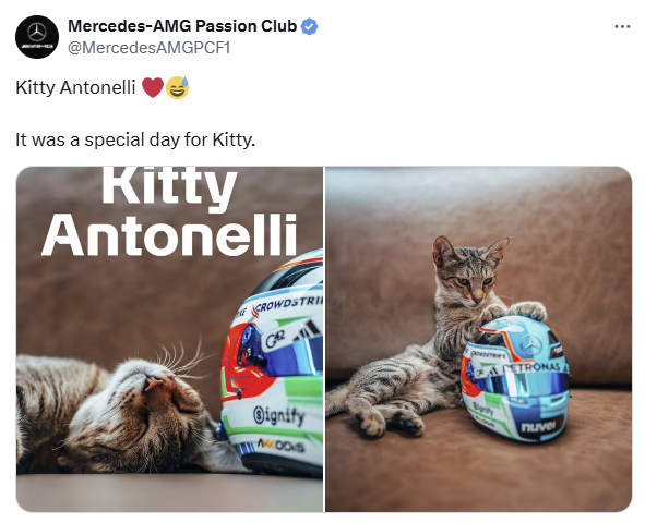 В общем, к концу вечера соцсети команд и журналистов Формулы 1 оказались наполнены фотографиями и видео с четвероногим гостем. Некоторые, кстати, придумали для него имя – Китти Антонелли.