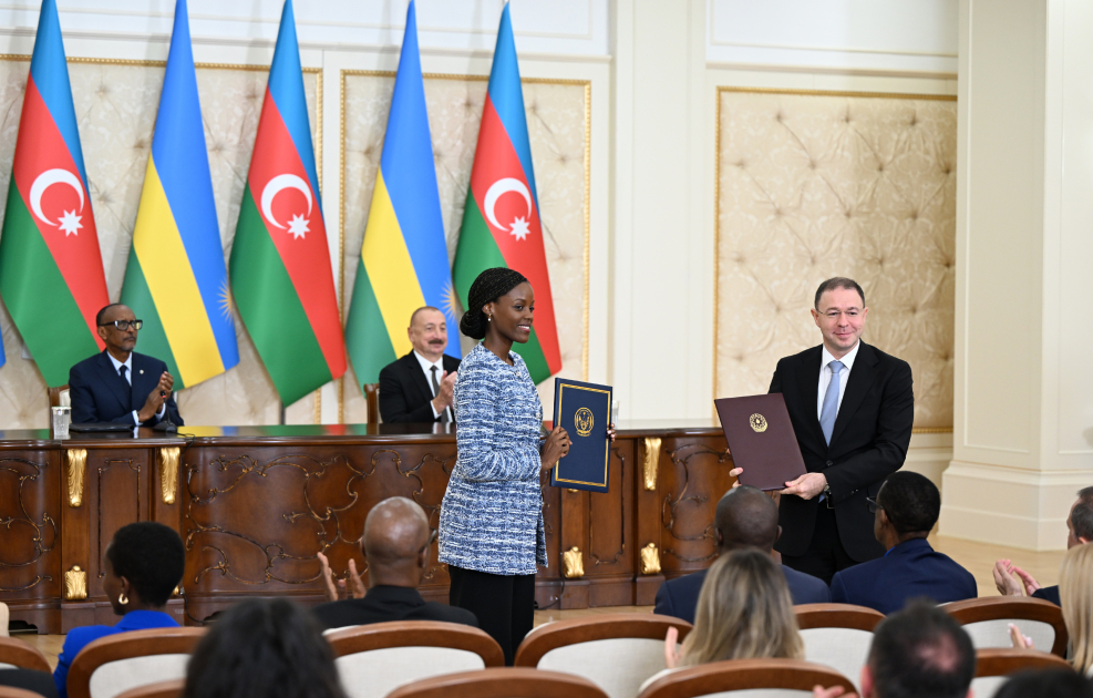 20 сентября с участием Президента Азербайджана Ильхама Алиева и Президента Руанды Поля Кагаме состоялась церемония обмена документами, подписанными между Азербайджанской Республикой и Республикой Руанда.
