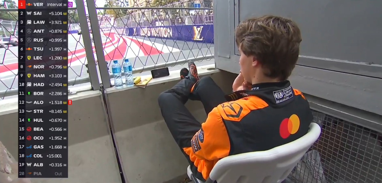 Как передает “Qafqazinfo”, еще на старте гонки Оскар столкнулся с защитной системой болида, не дающей машине заглохнуть, застряв на стартовой решетке и откатившись в конец пелотона.