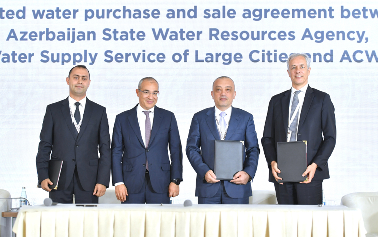 Соглашение о государственно-частном партнерстве по проектированию, строительству, финансированию, эксплуатации завода по опреснению воды Каспийского моря подписали председатель Государственного агентства водных ресурсов Азербайджана Заур Микаилов и генеральный директор компании ACWA Power Саудовской Аравии Марко Арчелли.