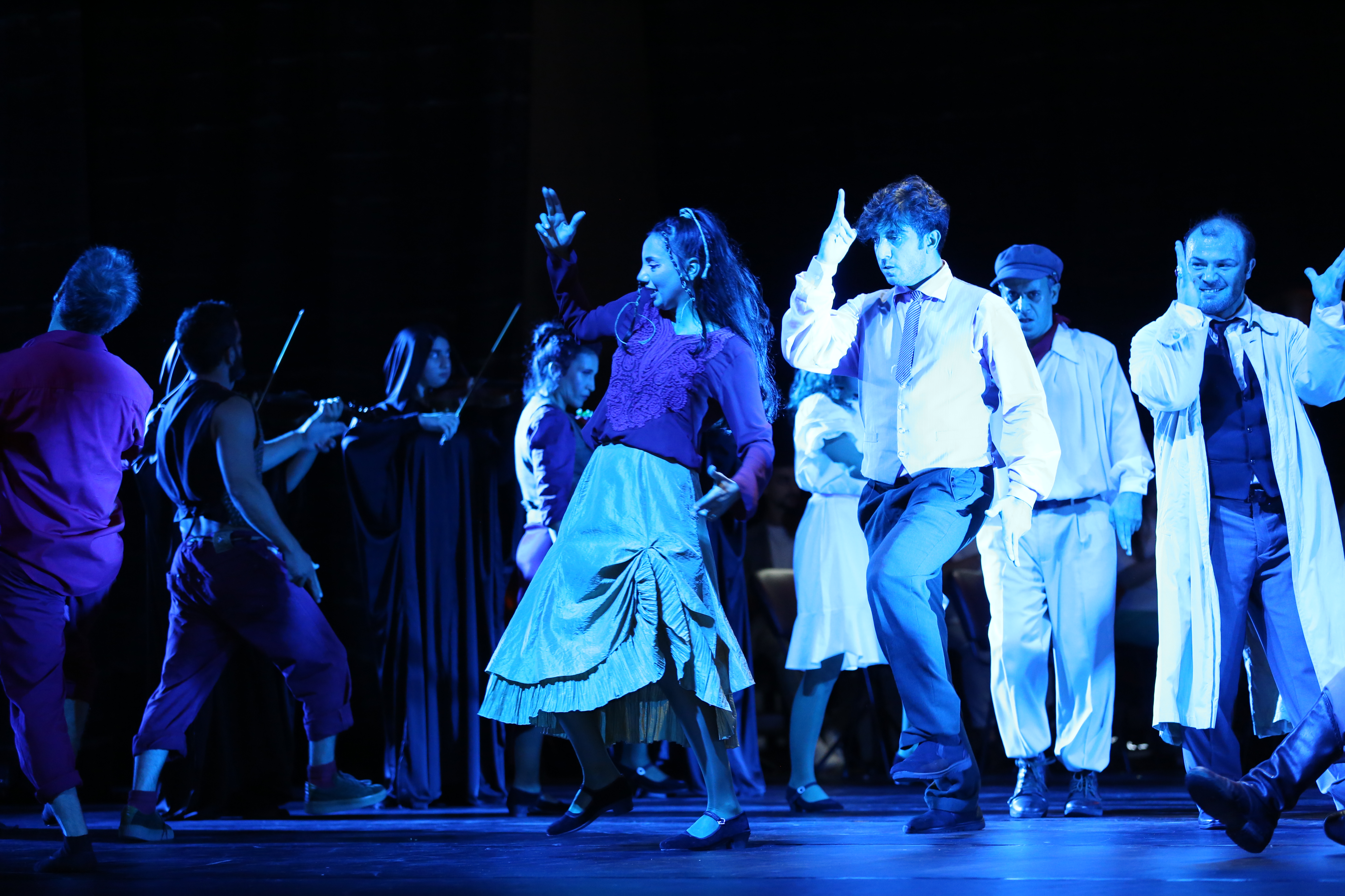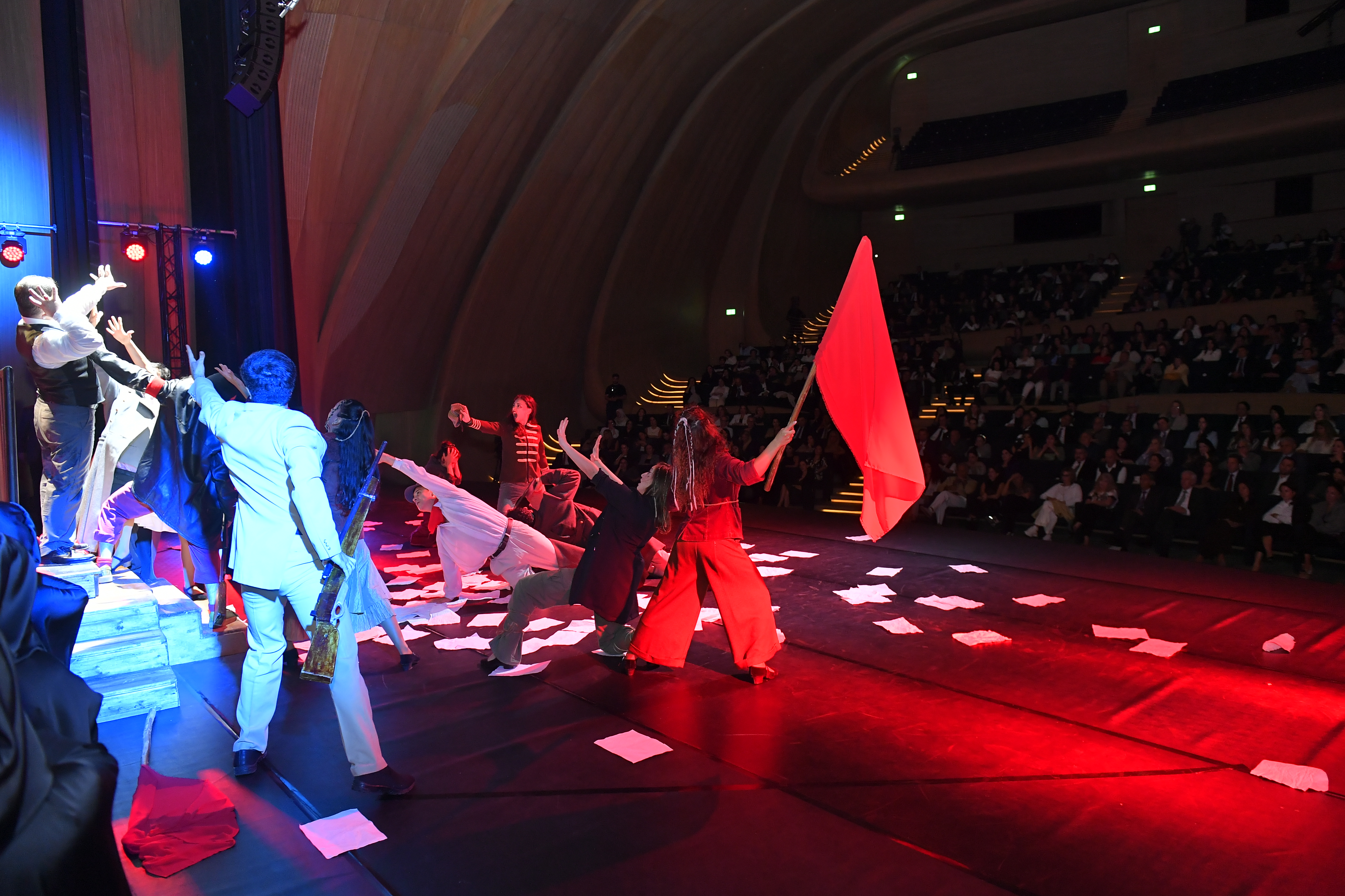 Как сообщает "Qafqazinfo", особенностью новой постановки произведения стало сопровождение живого оркестра, музыканты которого на протяжении спектакля становились его участниками.