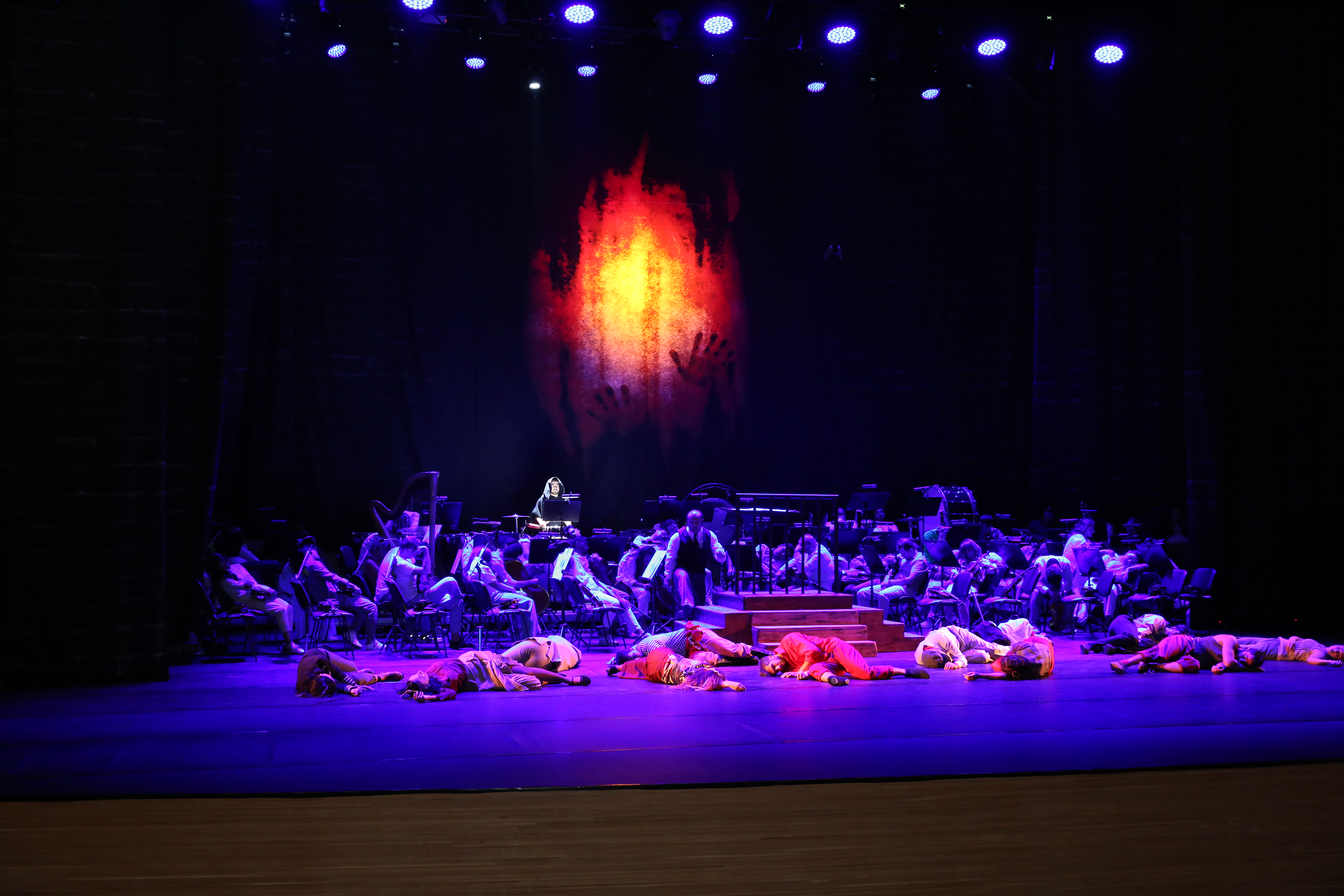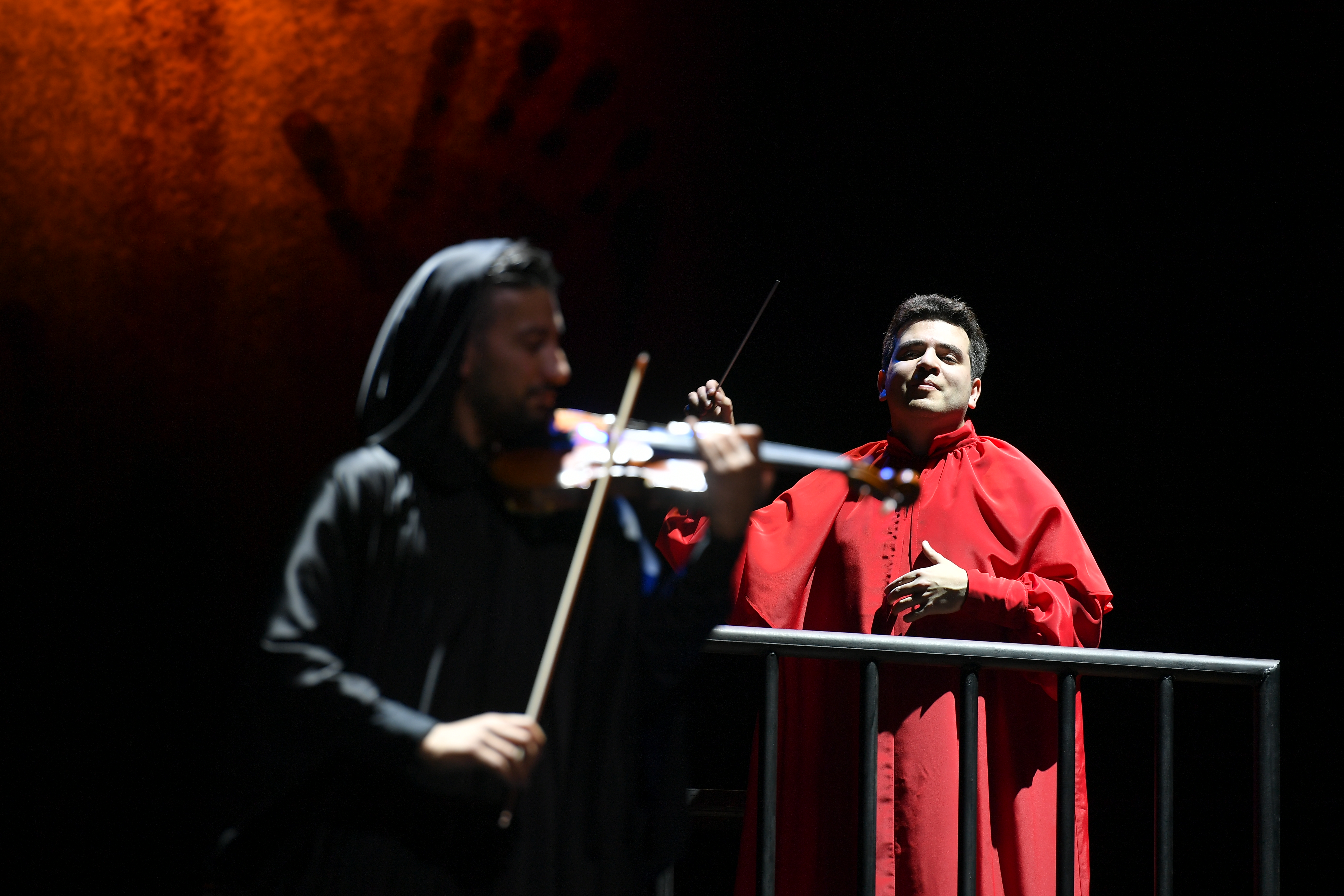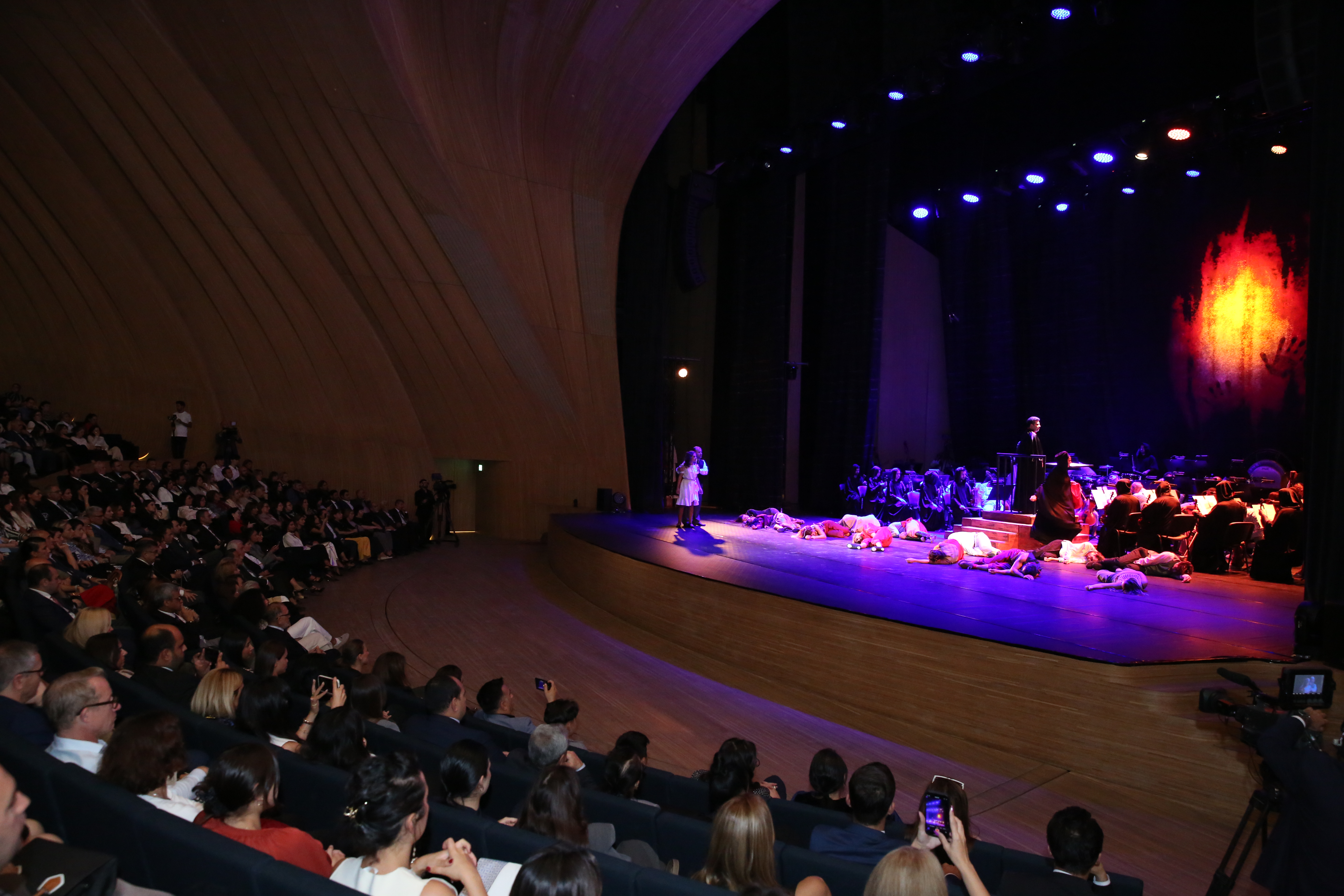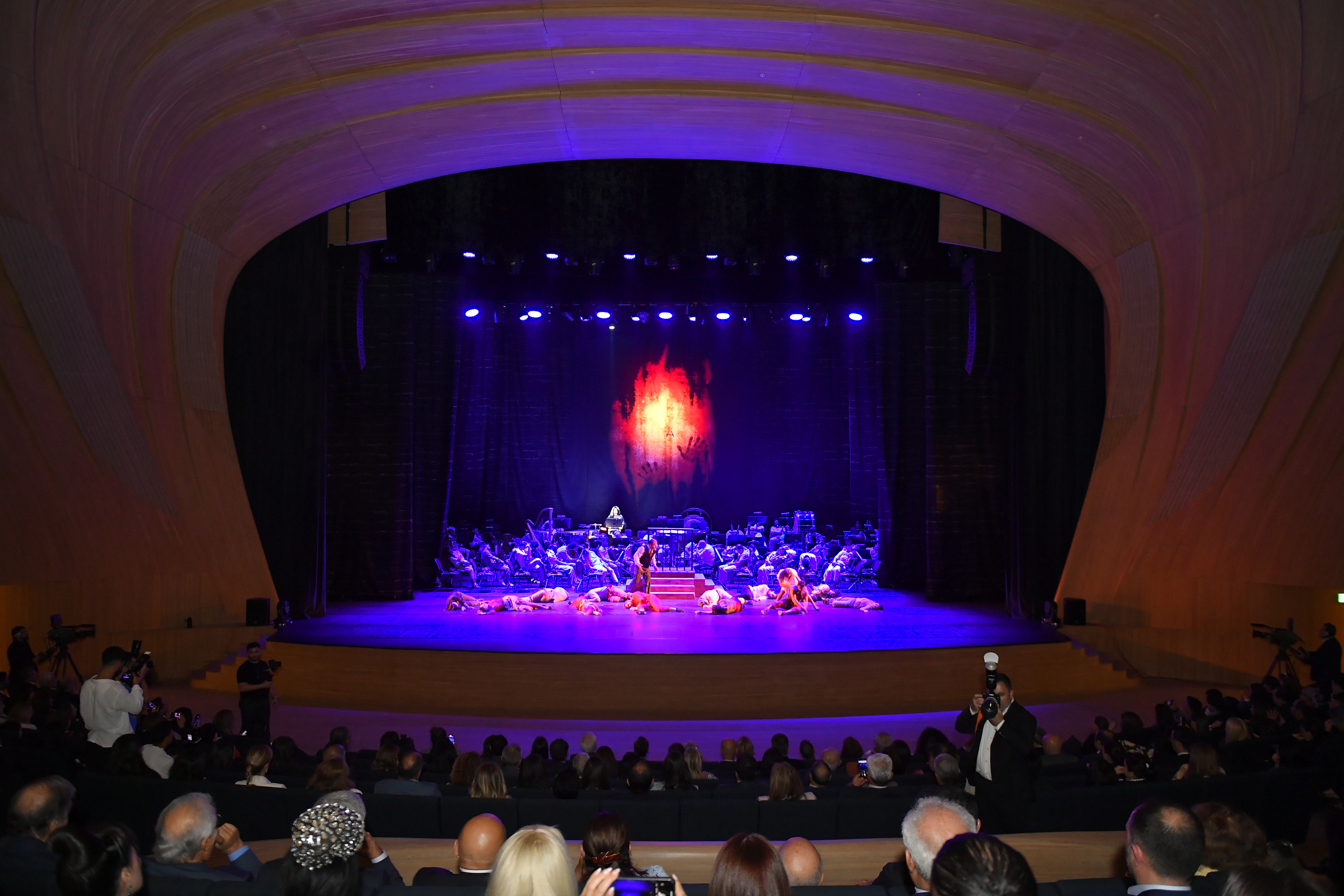 В первый день фестиваля «Насими – поэзия, духовность и искусство» в Центре Гейдара Алиева была представлена новая постановка пьесы Гусейна Джавида «Дьявол» при участии музыкантов симфонического оркестра и артистов Азербайджанского государственного театра пантомимы.