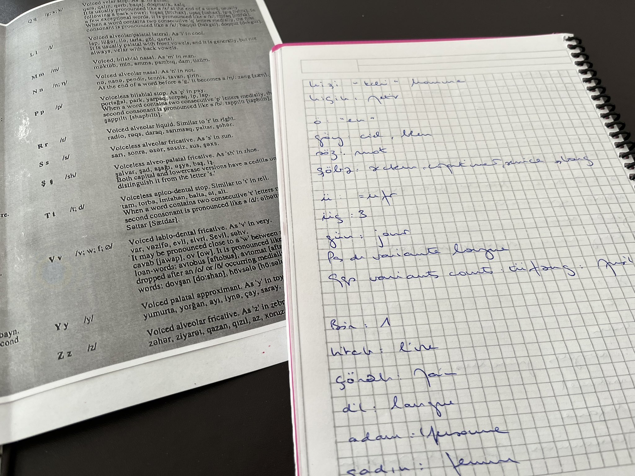 Выложив фотографию, демонстрирующую процесс обучения, посол отметила, что делает первые шаги в изучении азербайджанского языка.