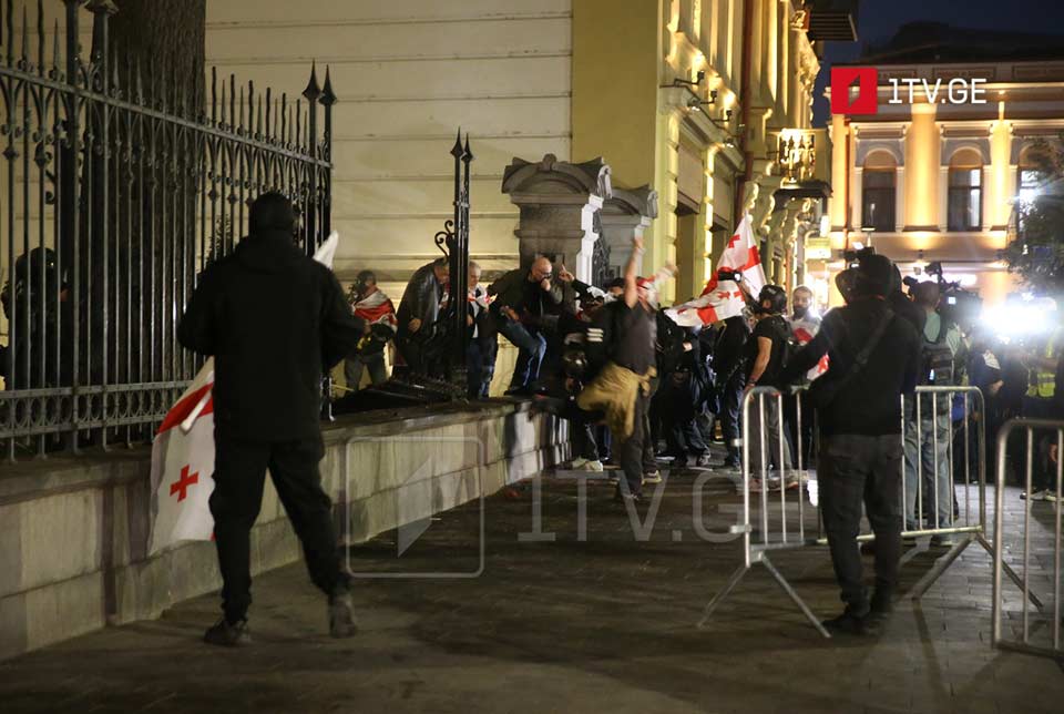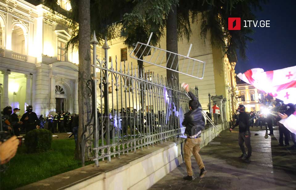 "Организаторы повредили барьеры у президентского дворца, расположенного на улице Атонели, и предприняли попытку ворваться в здание", - говорится в заявлении МВД.