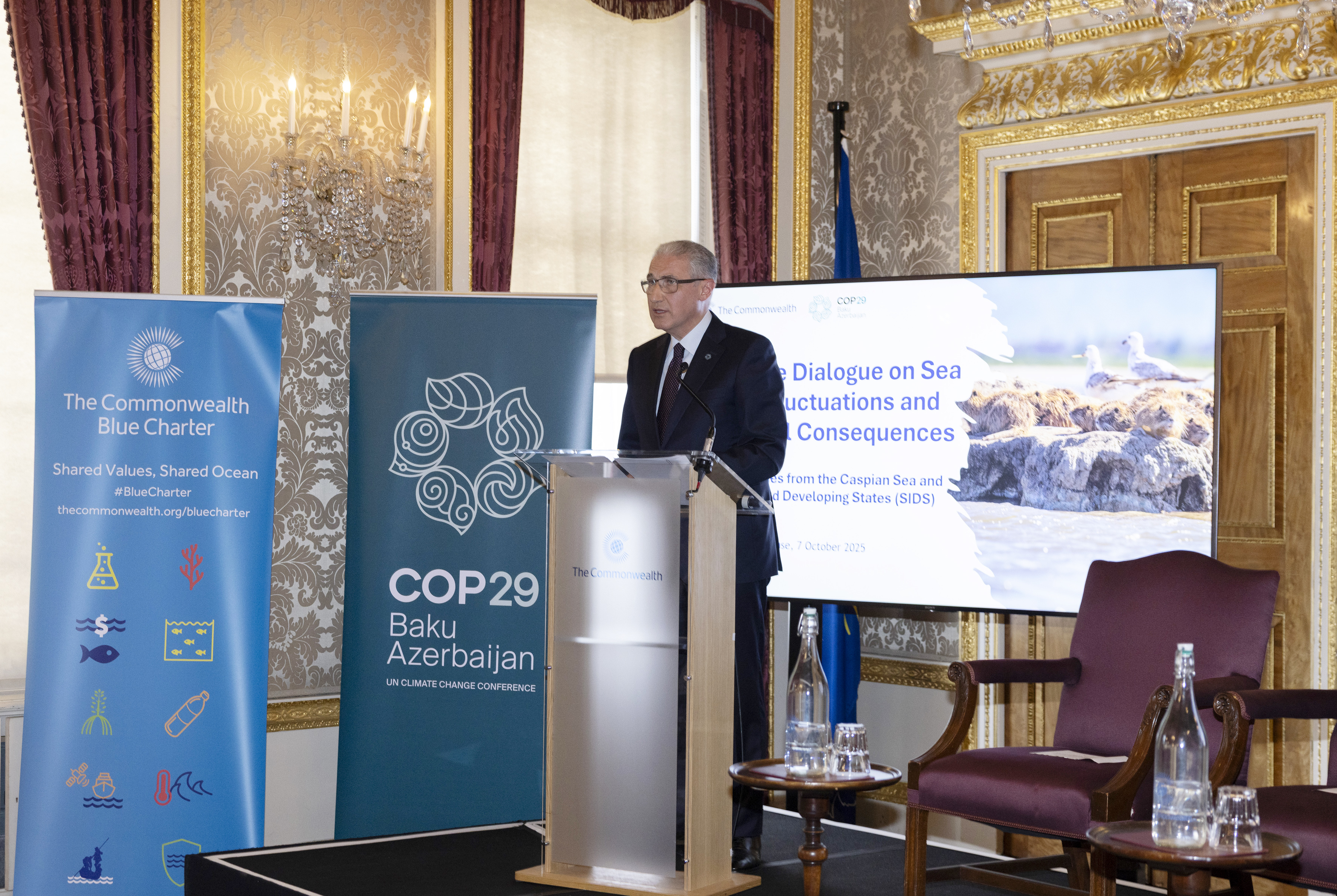 В историческом Мальборо-хаусе в Лондоне состоялся климатический диалог высокого уровня на тему “Колебания уровня моря и неравномерные последствия: опыт Каспийского моря и малых островных развивающихся государств (МОРАГ)”.