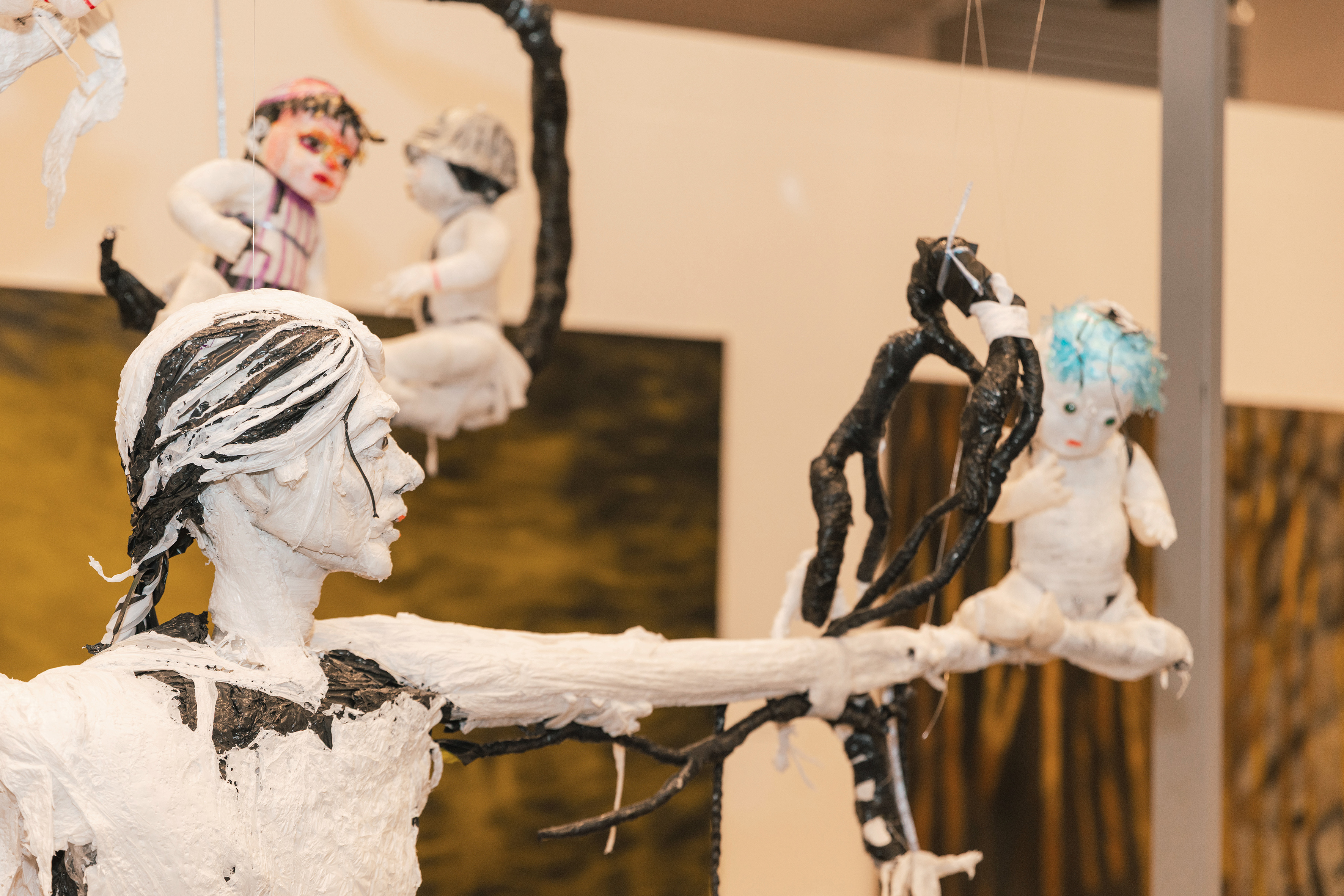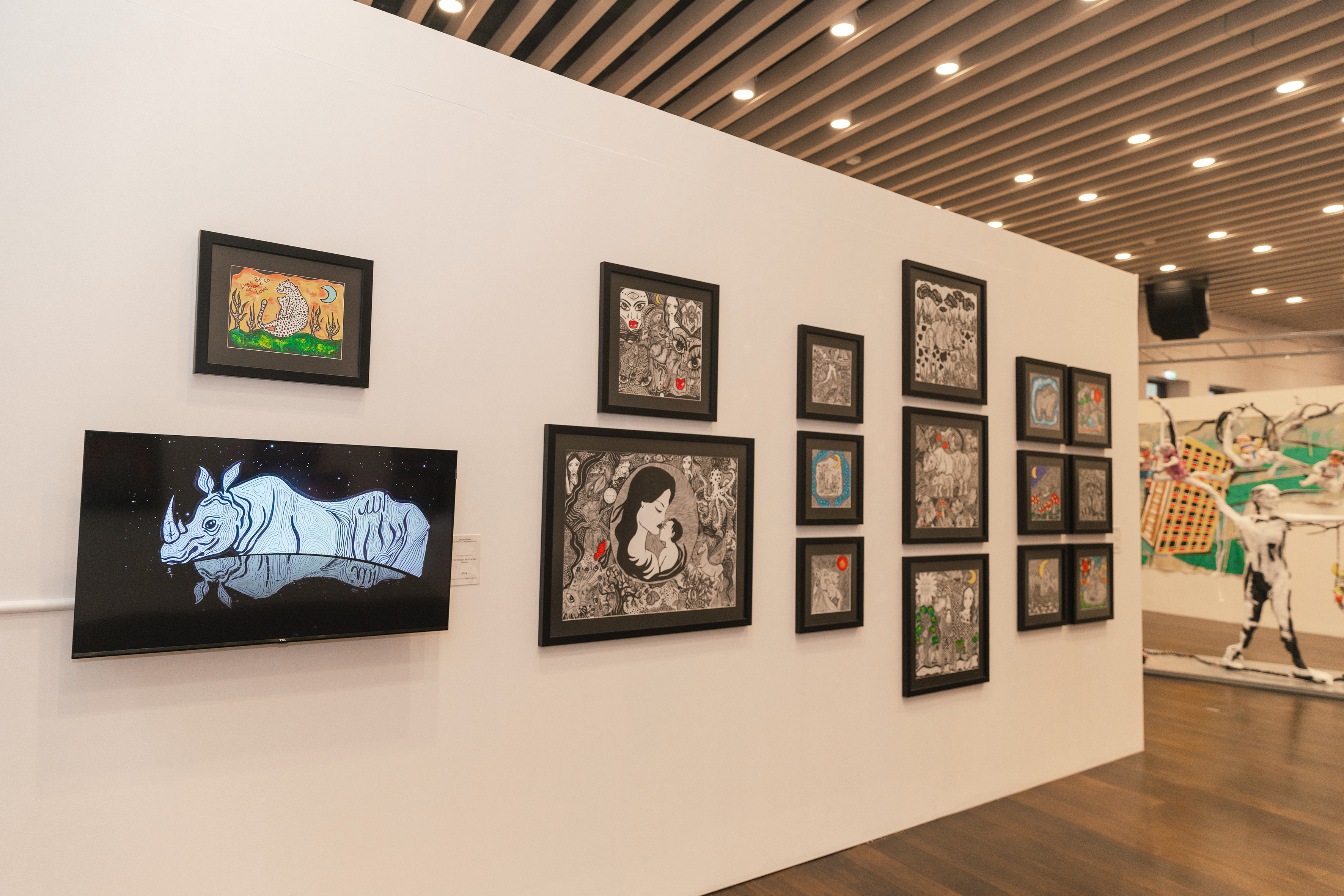 После выступлений Лейла Алиева, Арзу Алиева и участники ознакомились с произведениями, представленными на выставке.