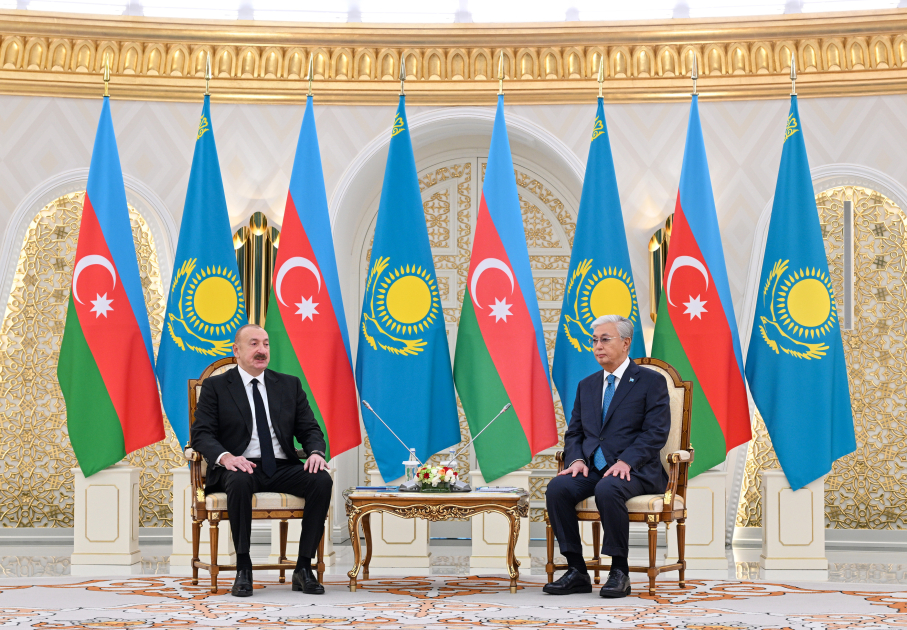 - Спасибо, уважаемый Касым-Жомарт Кемелевич. В первую очередь, хотел бы поблагодарить за приглашение посетить братский Казахстан с государственным визитом, а также за гостеприимство. Спасибо за Ваши добрые слова в адрес Азербайджана. Мы разделяем те же чувства к братскому народу Казахстана, так же радуемся успехам братской страны под Вашим руководством и в социально-экономическом развитии, и в укреплении международных позиций.