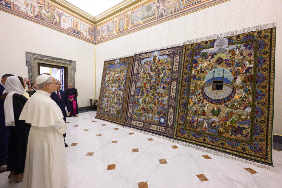В Ватикане состоялась презентация триптиха, созданного азербайджанскими ковроделами по проекту “Небесные религии”. Это произведение искусства, представленное на встрече Первого вице-президента Азербайджанской Республики Мехрибан Алиевой с Папой Римским Львом XIV, будучи посвящено иудаизму, христианству и исламу, является воплощением глубокой философской мысли и национального духа ремесленничества.