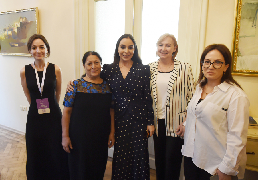 Вице-президент Фонда Гейдара Алиева, основатель и руководитель Общественного объединения IDEA Лейла Алиева ознакомилась с композицией.