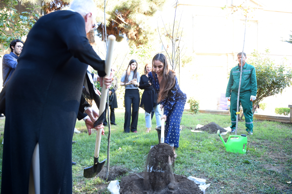 Затем при участии Лейлы Алиевой на террасе Центра было посажено фисташковое дерево.