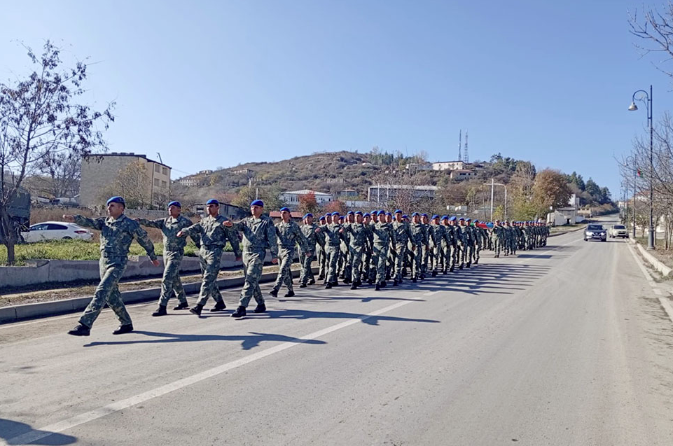 По случаю пятой годовщины Дня Победы на центральных улицах, проспектах и площадях в Баку, Сумгаите, Нахчыване, Ханкенди, Шуше и Лачыне были организованы шествия под аккомпанемент военных оркестров.