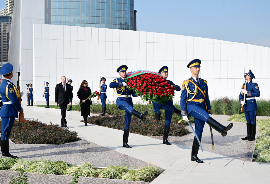 Президент Азербайджанской Республики Ильхам Алиев и первая леди Мехрибан Алиева посетили мемориал Победы в Баку и приняли участие в открытии Музея Победы.