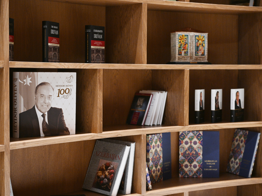 Первый зал музея под названием “Карабах и Восточный Зангезур. История веков” знакомит с красотой природы, историко-архитектурным богатством Карабаха – колыбели азербайджанской культуры. Книжные инсталляции на стене зала содержат обширную информацию о вкладе Общенационального лидера Гейдара Алиева в социально-экономическое развитие региона.
