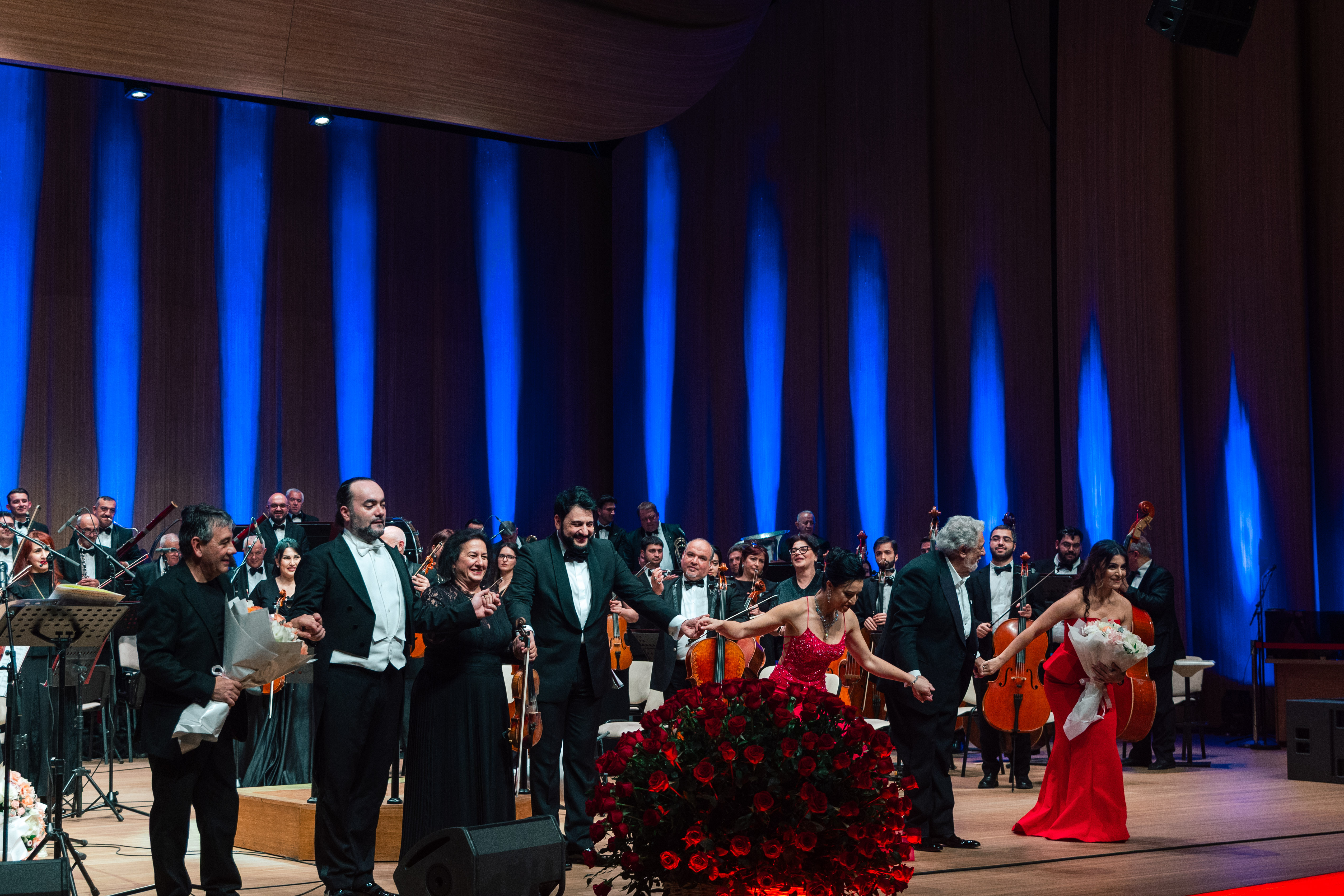 Пласидо Доминго разделил сцену со своим сыном Пласидо Доминго Jr.(младшим), Народным артистом Юсифом Эйвазовым, заслуженной артисткой Афаг Аббасовой и оперной певицей из Швейцарии Дарьей Рыбак.