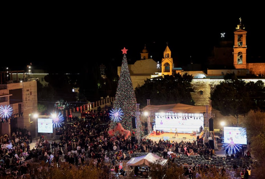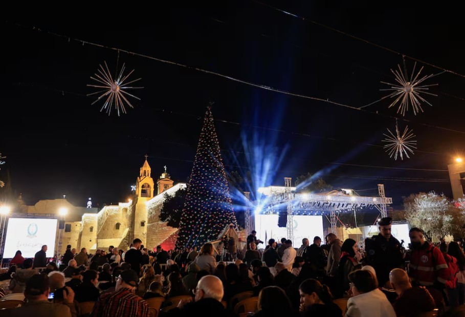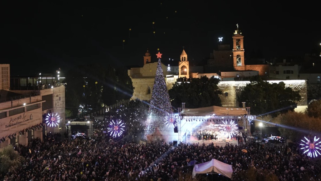 В Вифлееме перед исторической церковью Рождества Христова впервые за два года зажглись огни на рождественской ели.