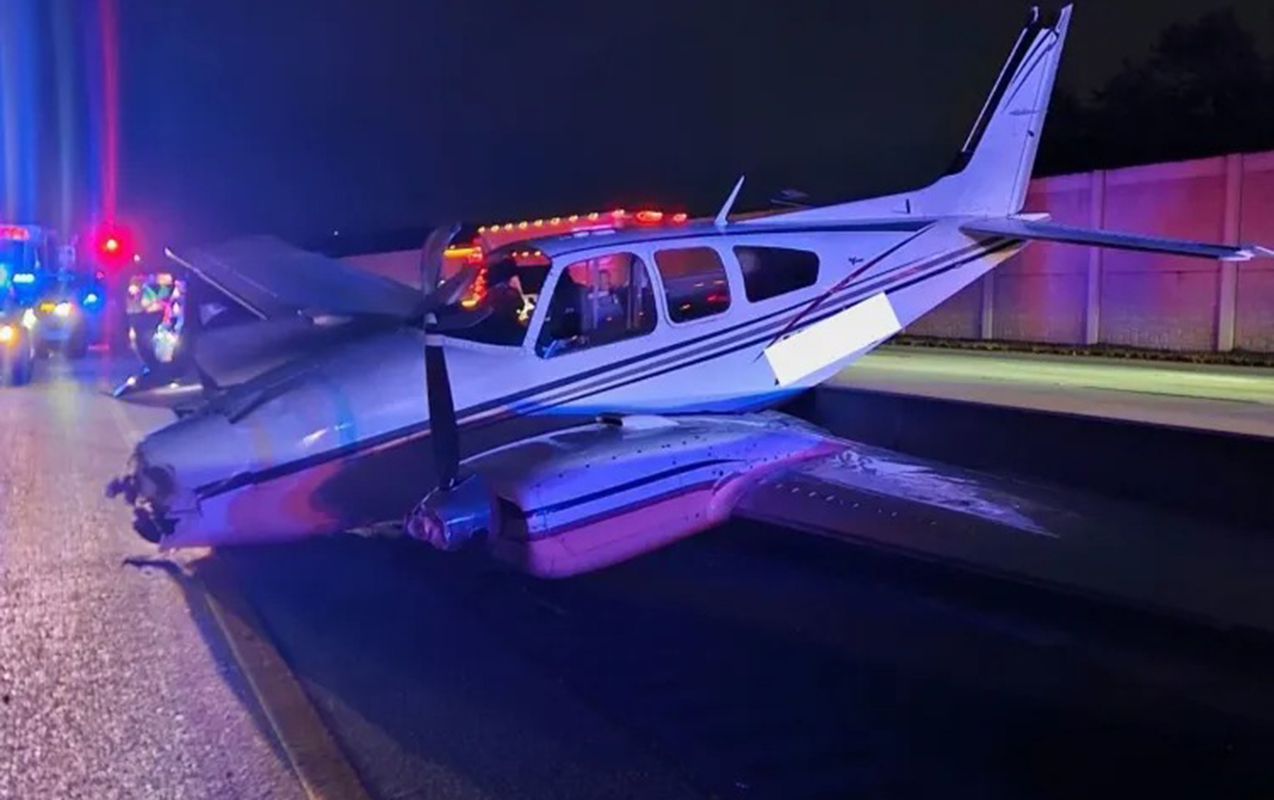 Легкомоторный самолет Beechcraft 55 врезался в поток машин на межштатной автомагистрали I-95 во Флориде во время попытки аварийной посадки.