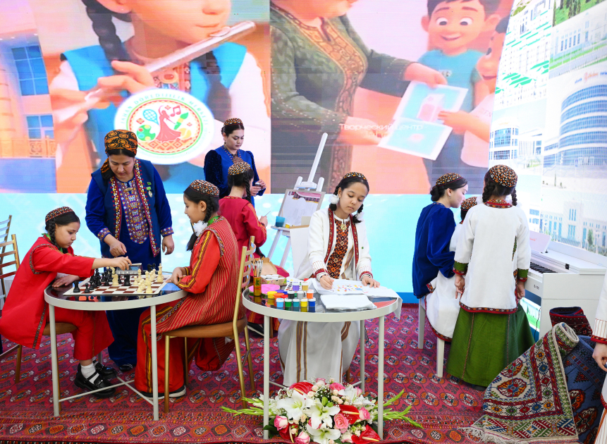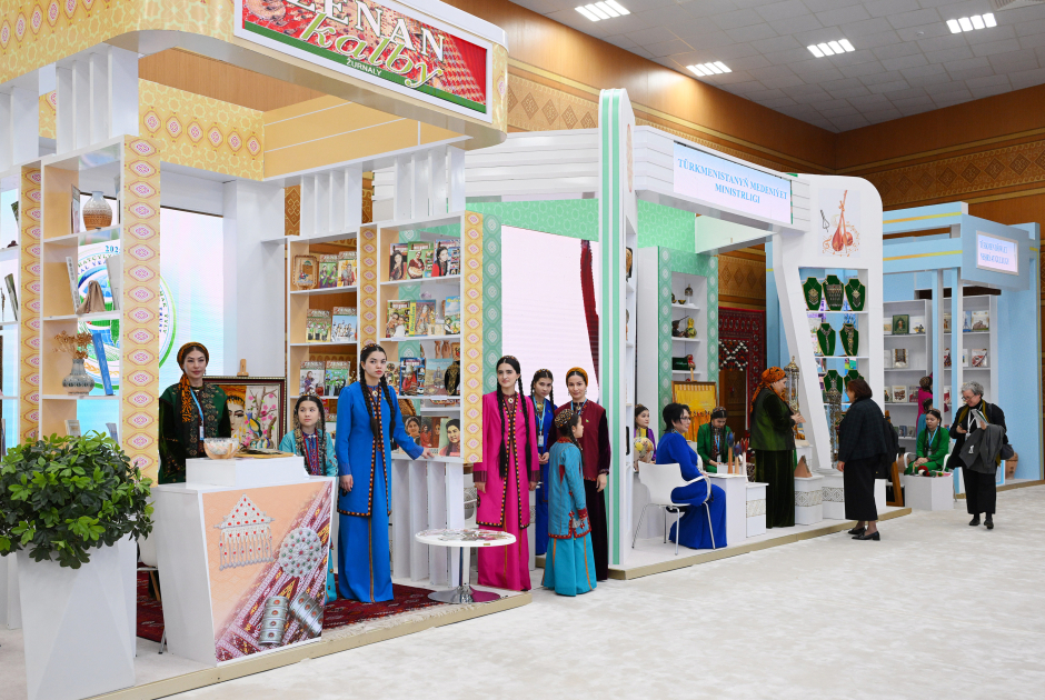 Сначала гости ознакомились с выставкой, демонстрирующей богатое культурное наследие и современные достижения Туркменистана. В экспозиции были представлены стенды, наглядно отражающие успехи страны в различных областях и активное участие женщин в государственном строительстве, экономике, науке, образовании и здравоохранении.
