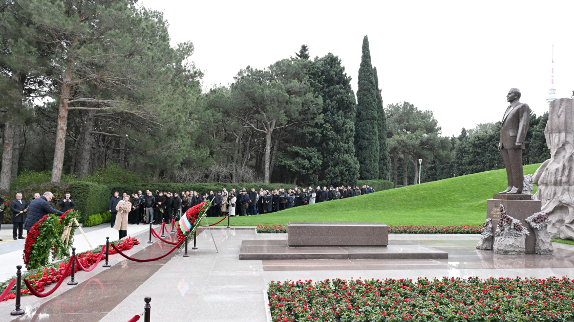 Как передает "Qafqazinfo", сначала делегация почтила память общенационального лидера нашего народа, архитектора и основателя современного независимого Азербайджанского государства Гейдара Алиева, возложила цветы к его могиле.