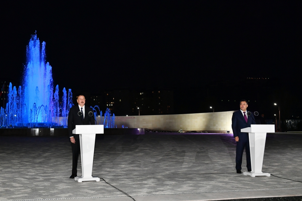 Президент Азербайджана Ильхам Алиев и Президент Кыргызстана Садыр Жапаров выступили на мероприятии.