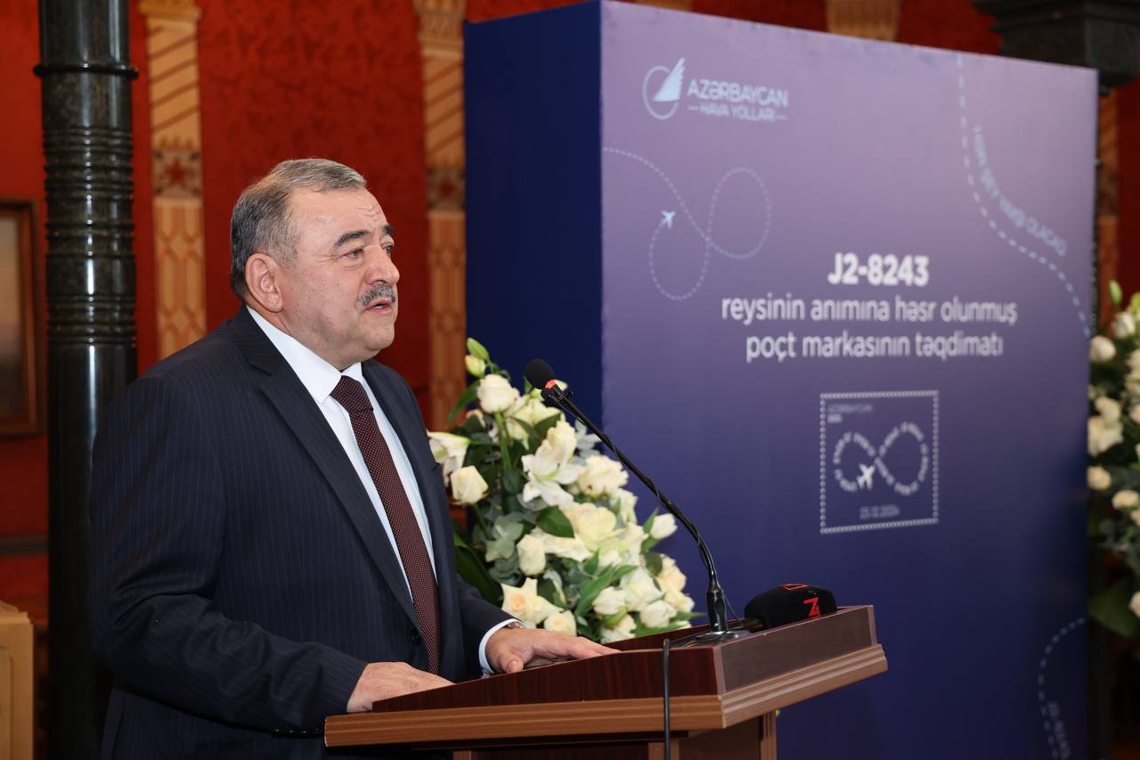 “Почтовая марка порой может казаться всего лишь клочком бумаги, но на самом деле она является носителем истории и культуры страны и нации. Эти маленькие символы, отправляемые из страны в страну, достигают разных адресов, каждый раз заставляя людей задуматься, заключают в себе историю, остаются в альбомах годами и передаются из поколения в поколение. В этом отношении выпуск в обращение марок, посвященных рейсу J2-8243, является весьма ценным шагом, который делает память долговечной и доносит ее до широких общественных масс”, - сказал И.Амиров.