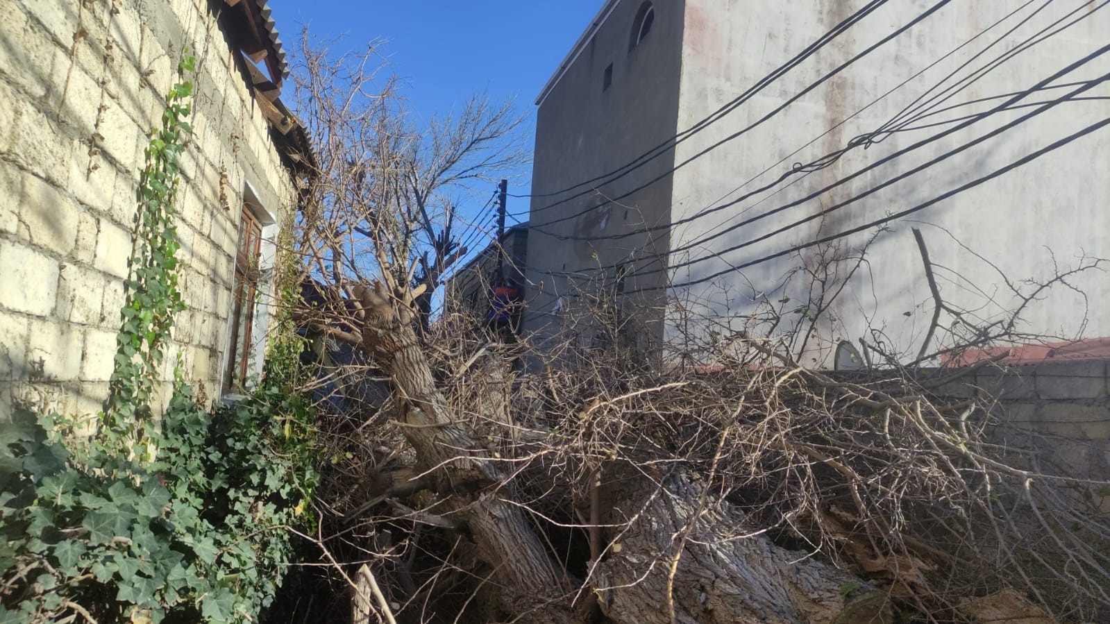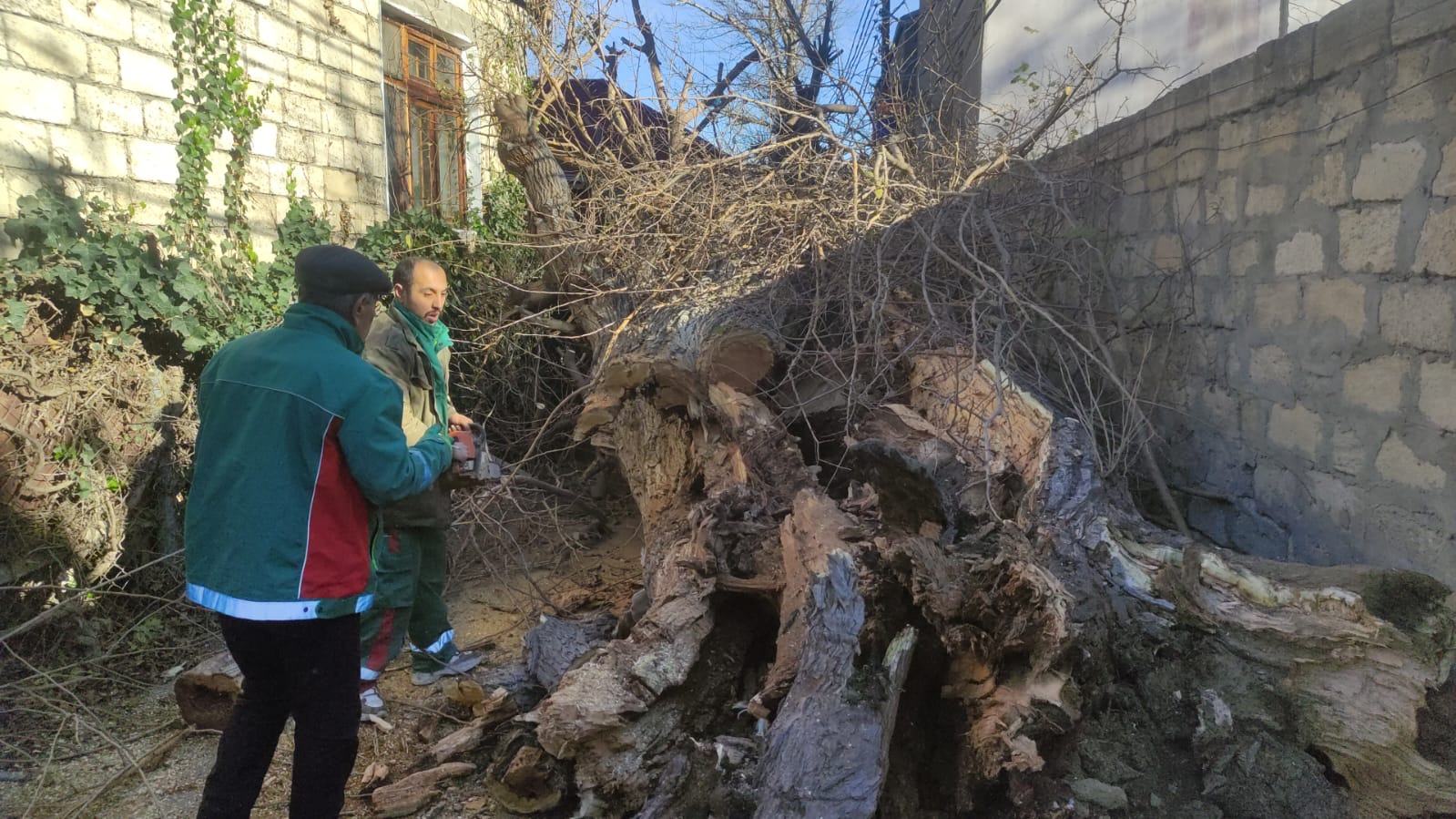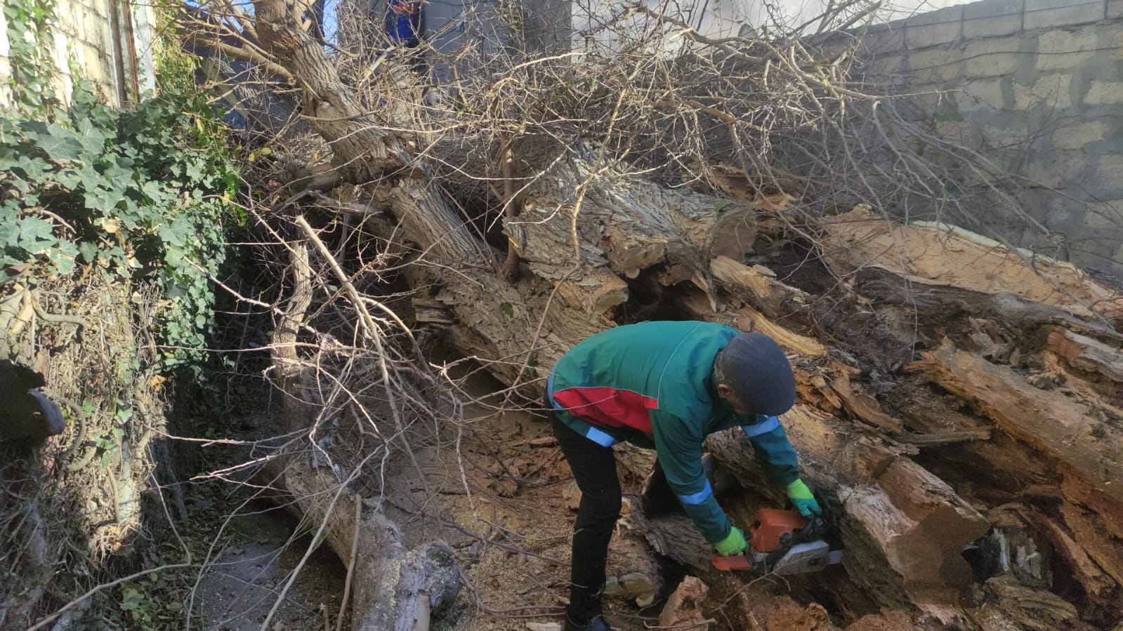 Сотрудники Объединения озеленительного хозяйства Исполнительной власти города Баку устранили последствия падения дерева на улице Ахмеда Гасымова в поселке Баладжары Бинагадинского района столицы.
