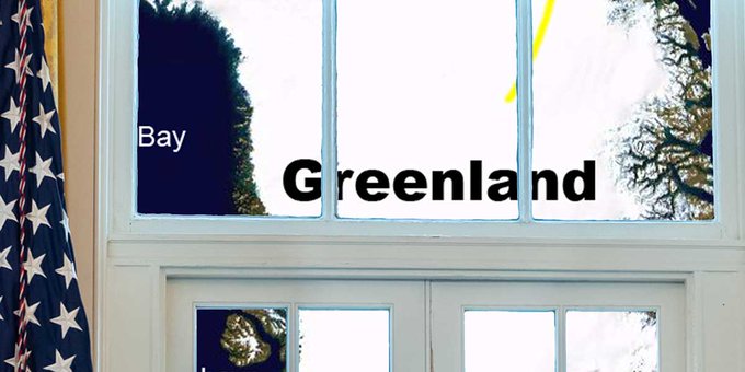 Белый дом опубликовал в соцсети X фотографию президента США Дональда Трампа, смотрящего в окна своего кабинета, за которыми размещена большая карта Гренландии.