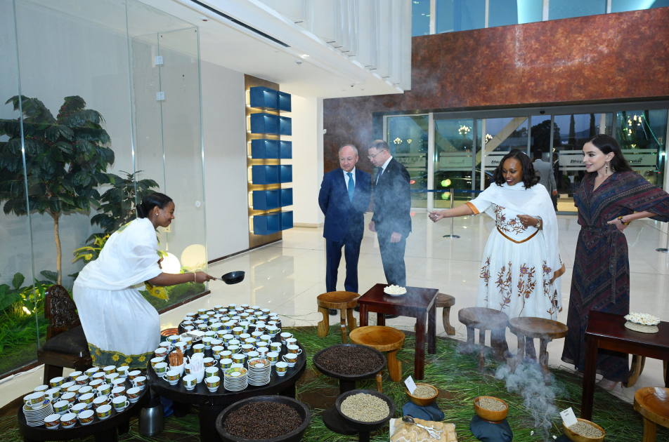 В честь Лейлы Алиевой была организована традиционная кофейная церемония, отражающая древнюю и богатую культуру Эфиопии. В ходе мероприятия гостям была представлена подробная информация об этом древнем ритуале. В завершение церемонии гостям был предложен свежесваренный эфиопский кофе, отличающийся изысканным ароматом и необычным вкусом.