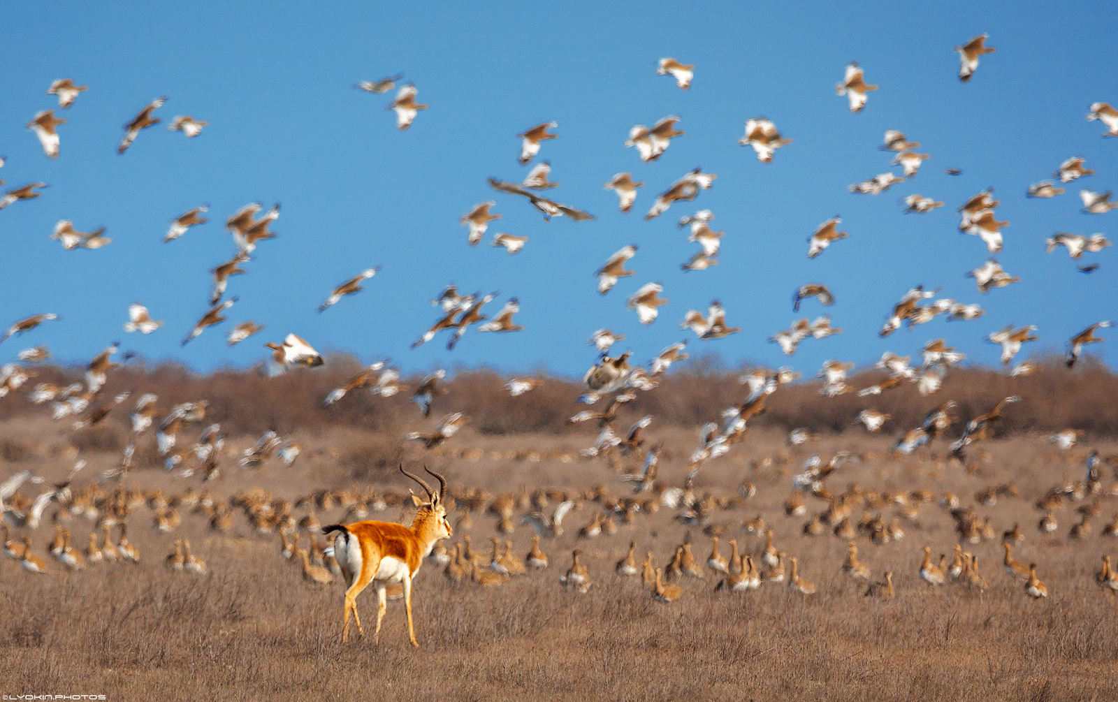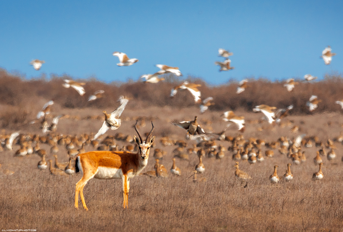 Как передает "Qafqazinfo", на представленных фотографиях запечатлены уникальная природа парка, бескрайние равнинные просторы, водоемы и обитающие здесь редкие виды животных.
