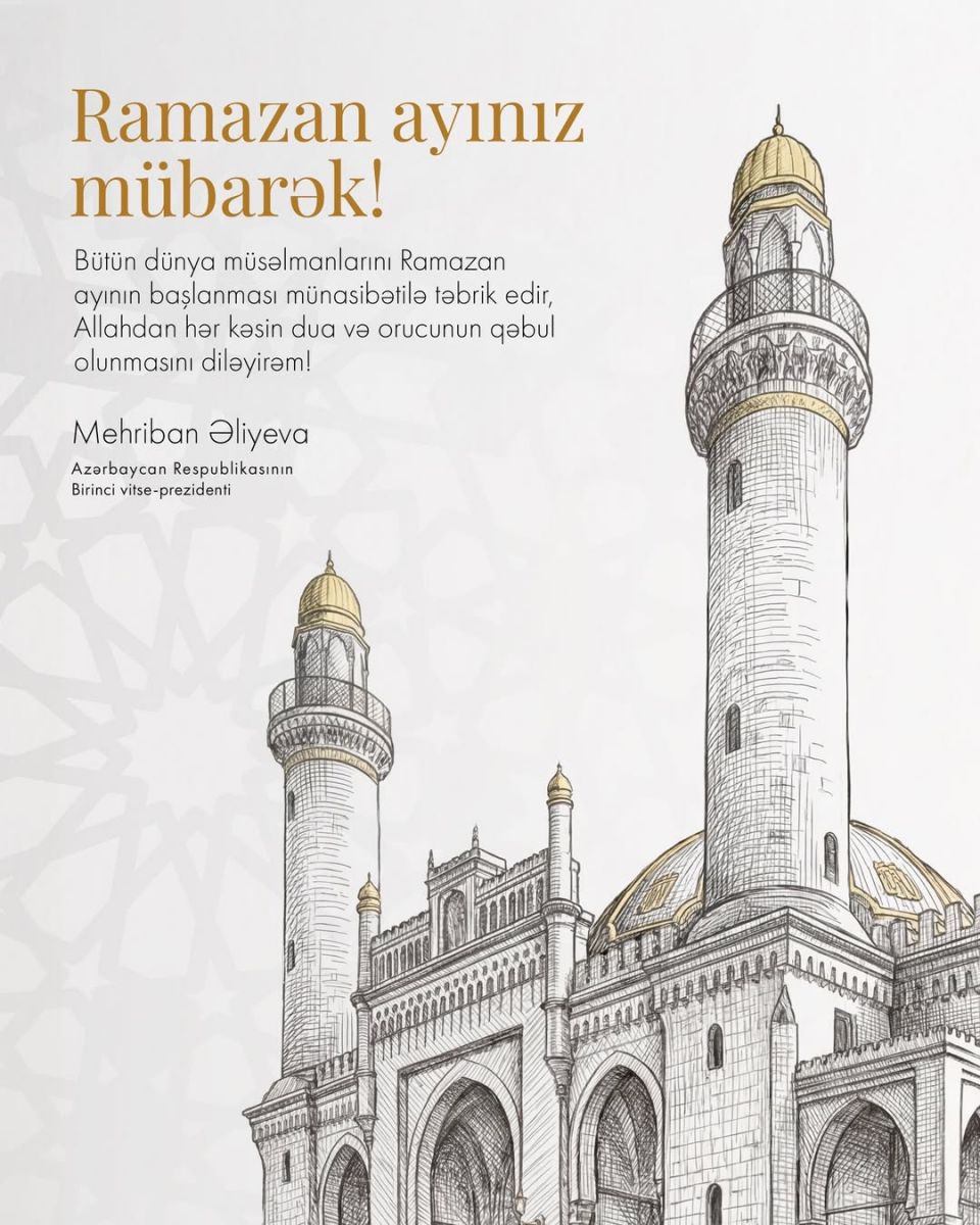 Первый вице-президент Азербайджана Мехрибан Алиева поделилась публикацией по случаю начала Священного месяца Рамазан.