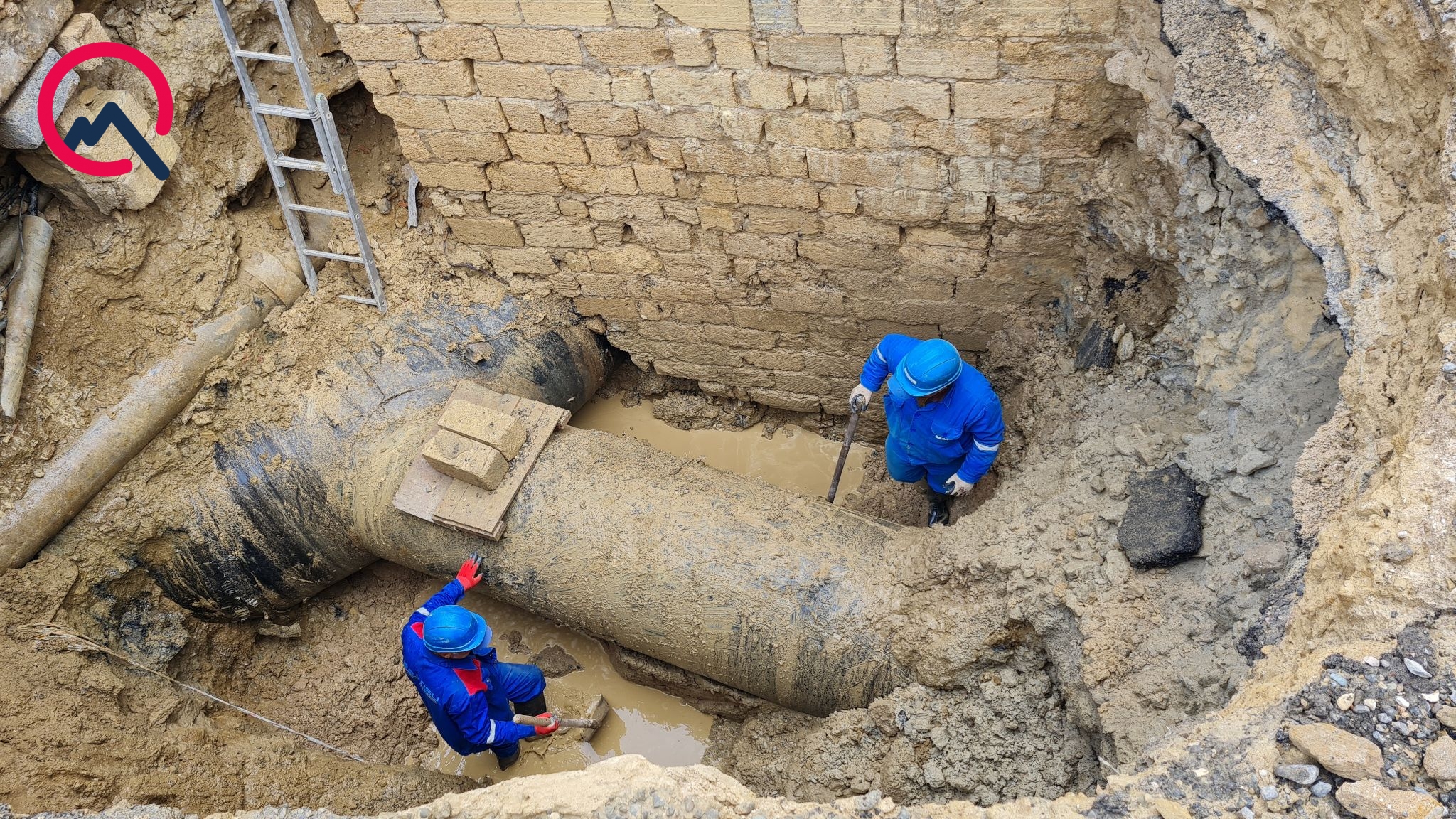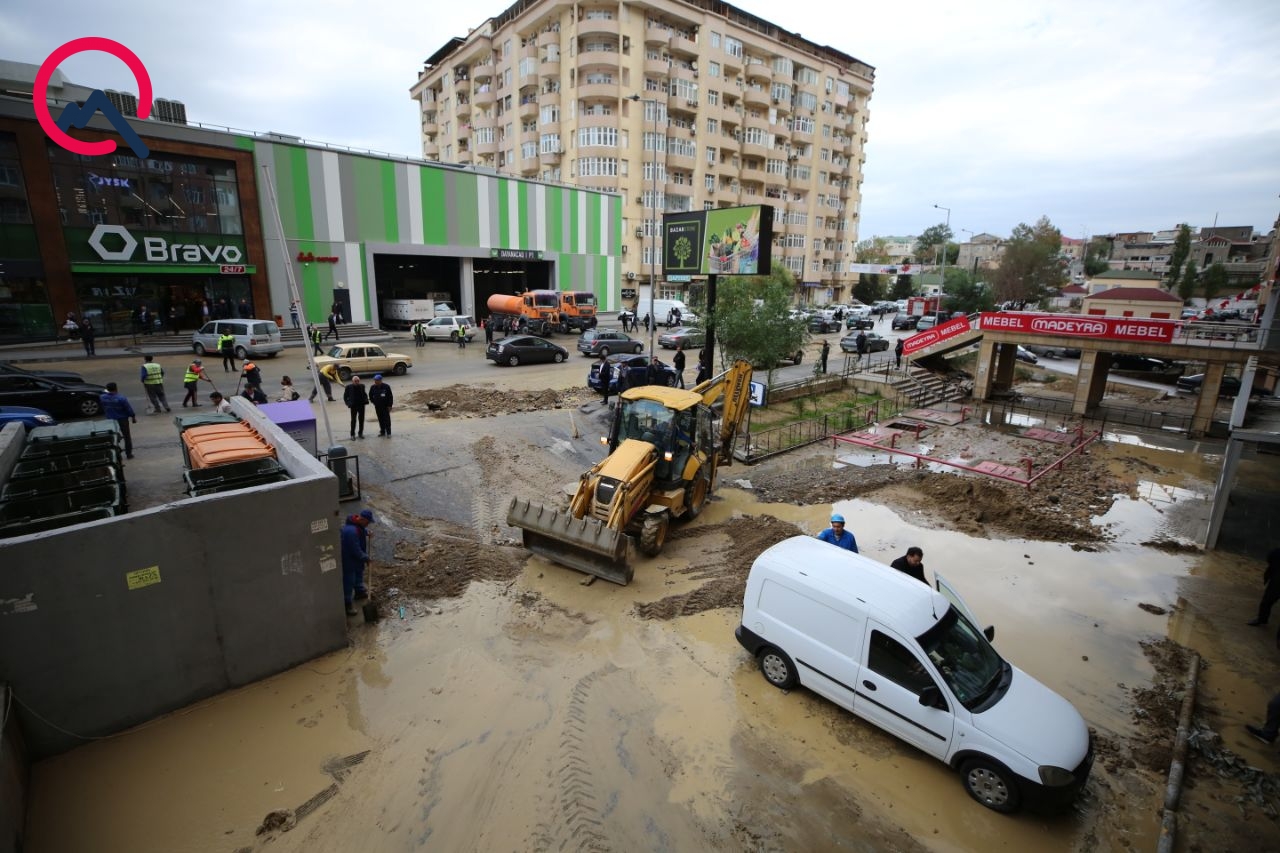 Как сообщалось ранее, сегодня утром на магистральном водопроводе диаметром 1400 мм, расположенном по улице Асада Ахмедова Ясамальского района города Баку, произошла авария, в результате чего прилегающая территория была затоплена.