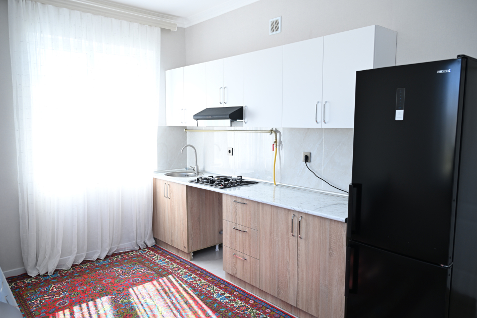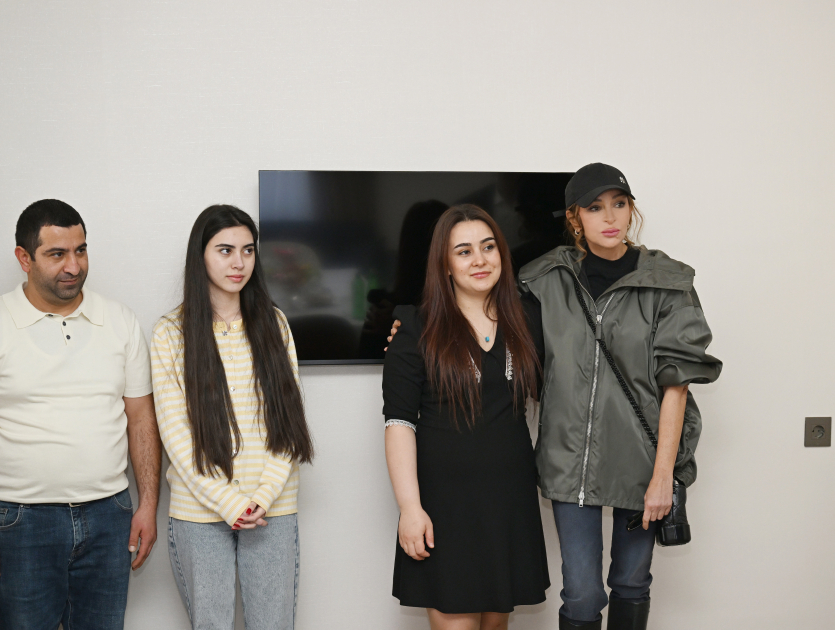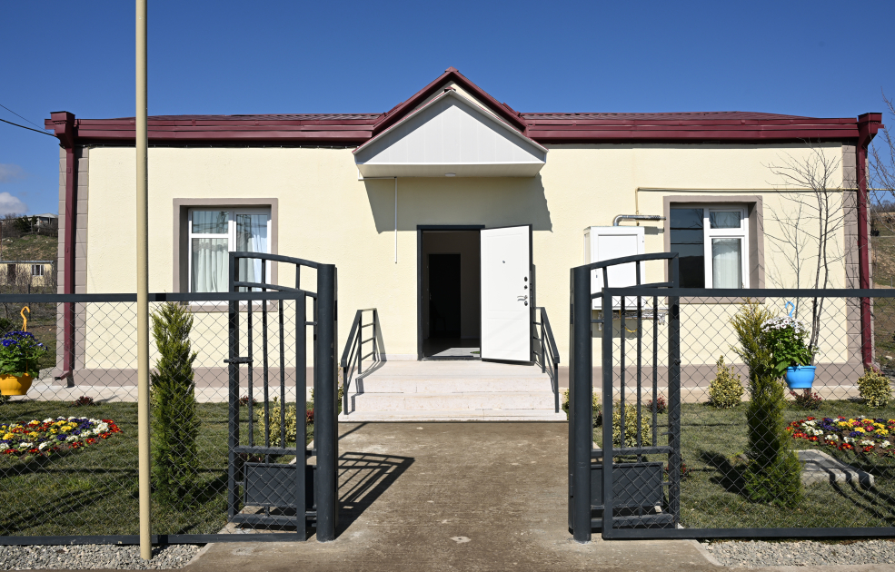 После ознакомления с проделанной работой Президент Ильхам Алиев, первая леди Мехрибан Алиева и их дочь Арзу Алиева побывали в доме переселившегося в село жителя Ризвана Ибрагимова.