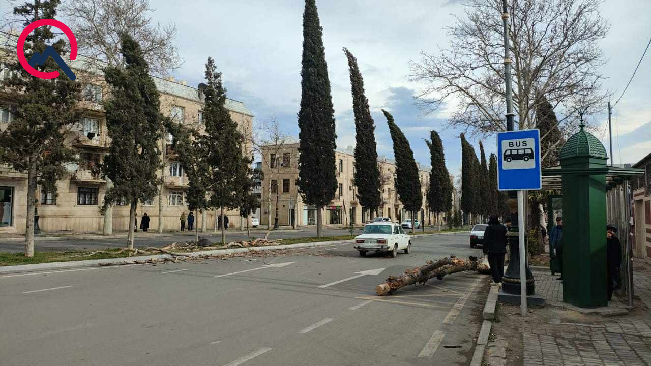Как передает "Qafqazinfo", падение деревьев зафиксировано на улице М. Аббасзаде, проспекте Г. Алиева, а также на территории 4-го микрорайона.