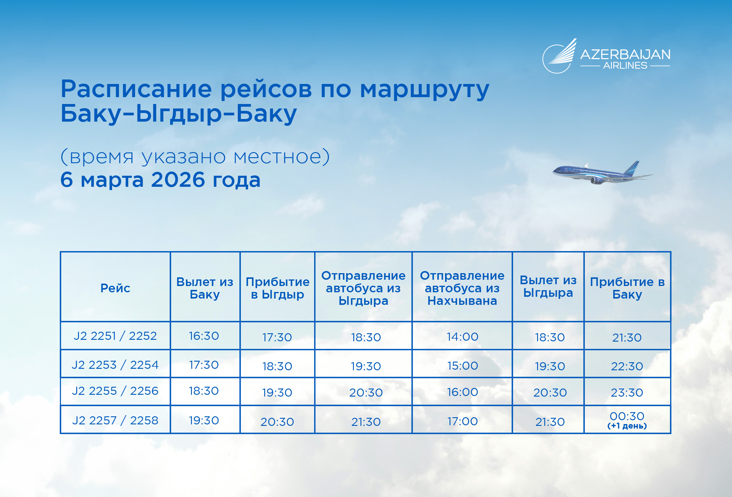 Учитывая сложившуюся ситуацию подготовлено очередное расписание рейсов по маршруту Баку-Ыгдыр-Баку авиакомпании AZAL с тем, чтобы граждане Азербайджана могли воспользоваться альтернативным транспортным сообщением между Баку и Нахчываном.