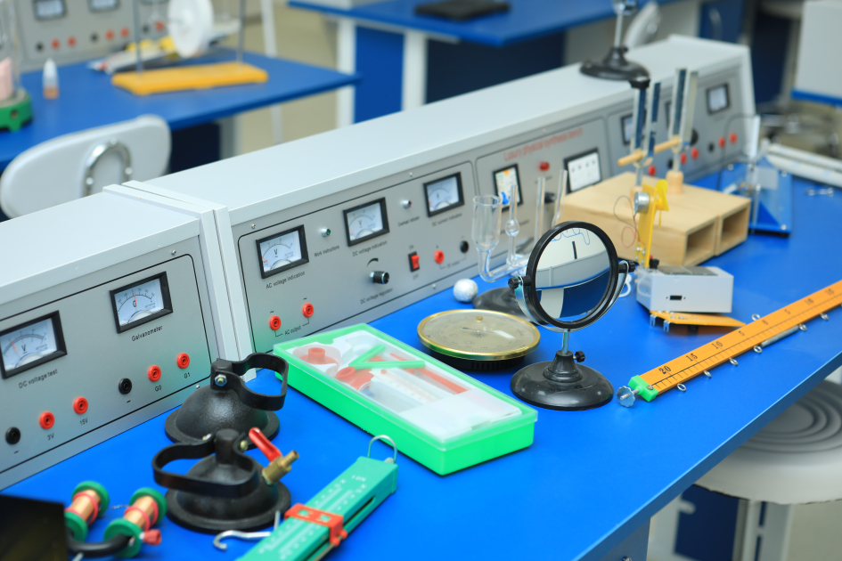 Здесь создано более 50 классных комнат, физическая, химическая и биологическая лаборатории, кабинеты информатики и STEAM, военной подготовки, трудового обучения, медпункт, библиотека, столовая, актовый и спортивный залы, а также открытая спортивная площадка.