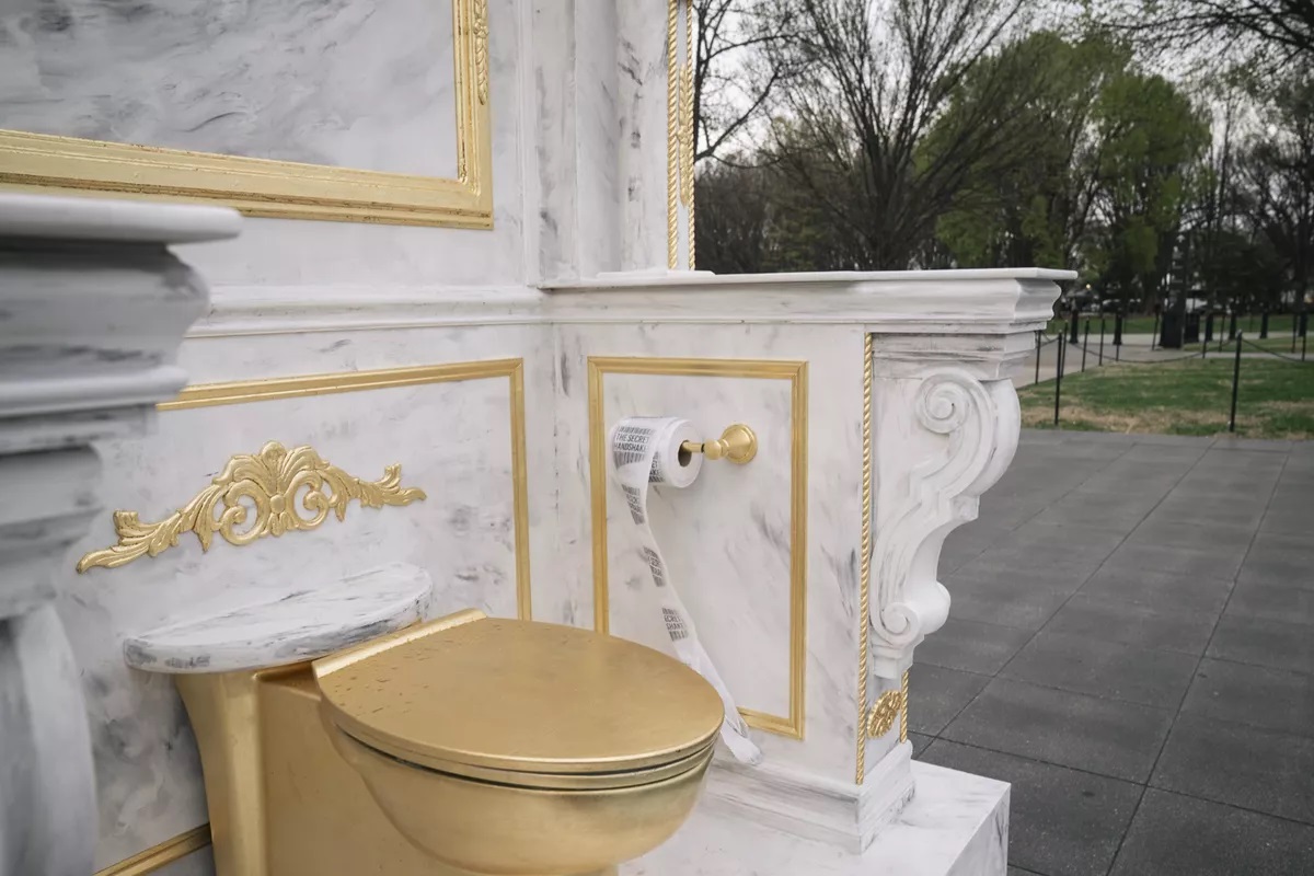 Композиция установлена у мемориала Аврааму Линкольну, она представляет собой стилизованный под мрамор трон с позолоченными декоративными элементами и "золотым" унитазом в центре.