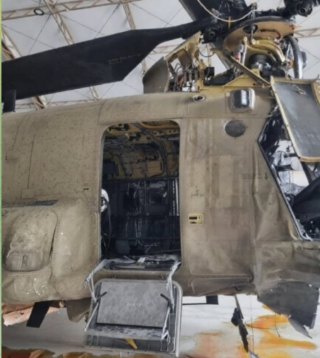 Американский вертолет Boeing CH-47 Chinook, уничтоженный ударом иранского дрона, сняли на фото.